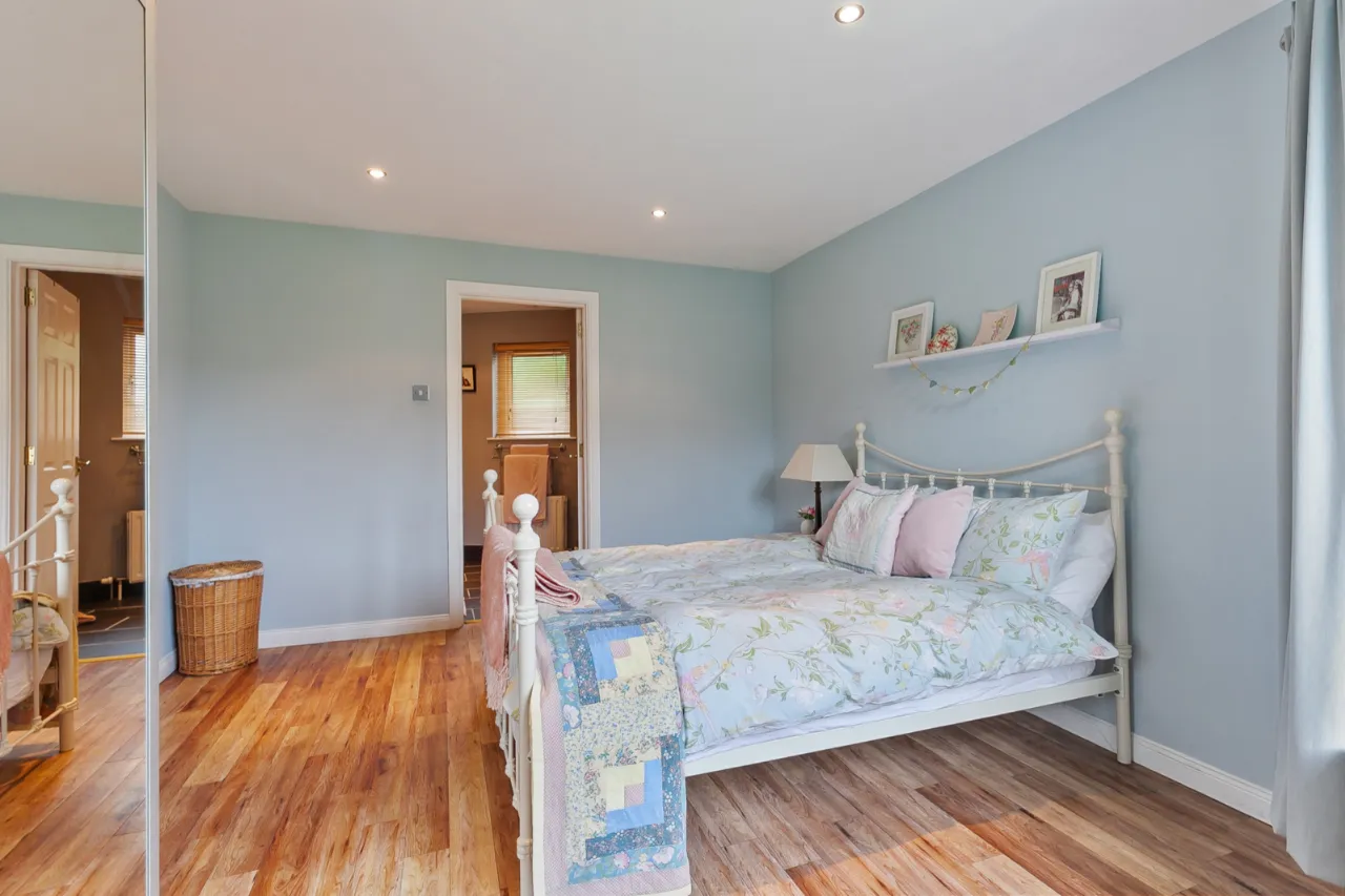 Range of fitted wardrobes, access into eve storage, recessed lighting and Amtico flooring.