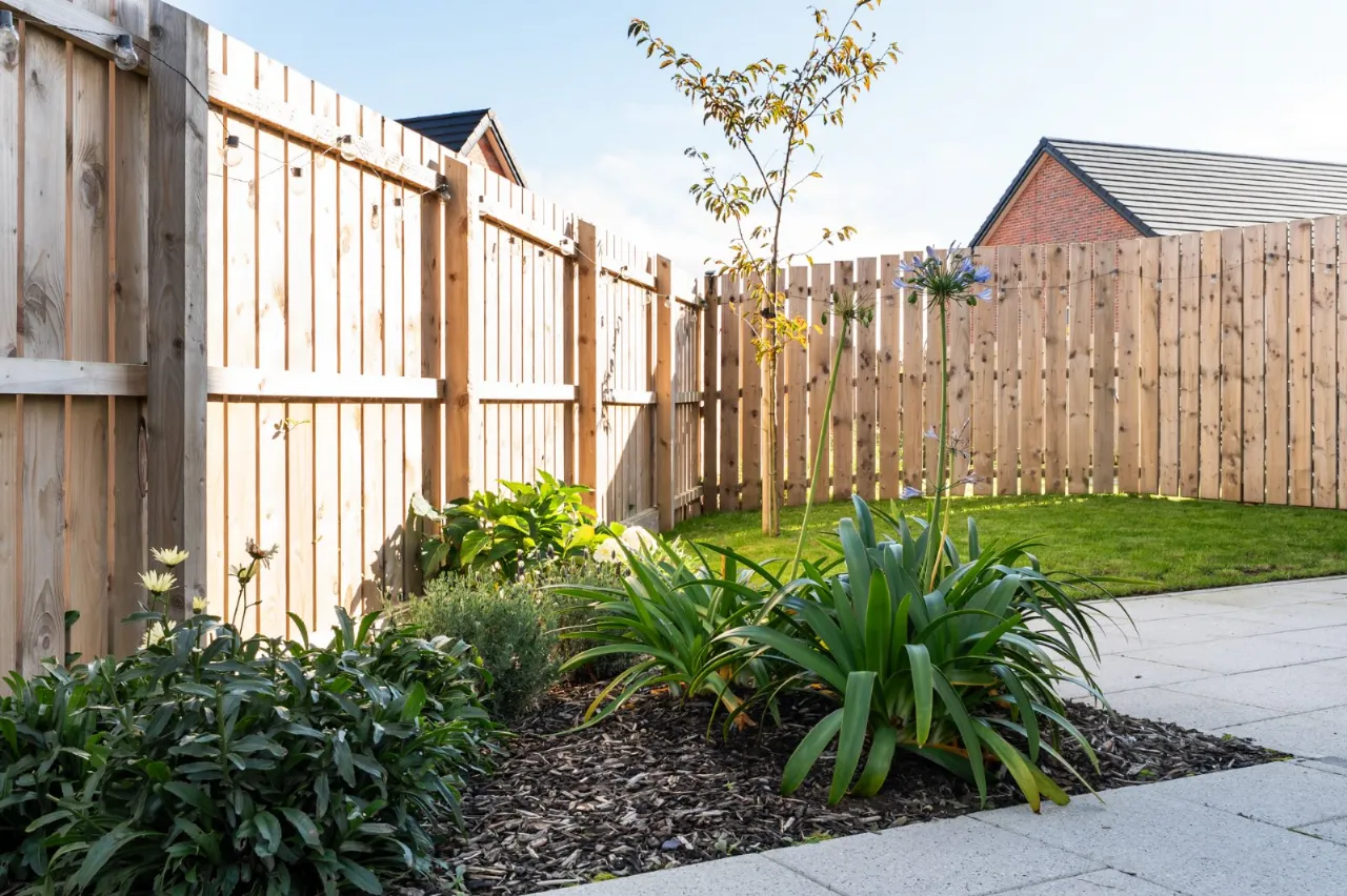 Gardens to front in ornamental lawn, modern paved paths, well stocked flowerbeds covered with bark chippings.  Enclosed side and rear gardens laid out in manicured lawns, large modern paved patio area and paths, well stocked flowerbed covered in bark chippings, good sized chalet style garden shed, fencing, outside light, outside power point, access to both sides via timber gates.