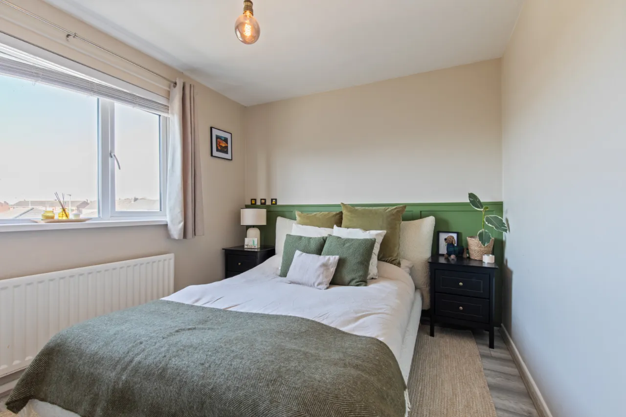 Built in robe, polished laminate floor, views over Newtownards to Scrabo Tower, wall panelling.