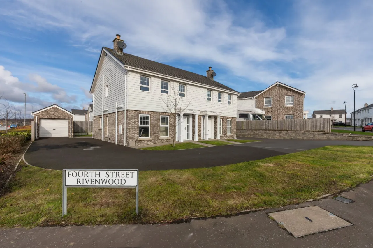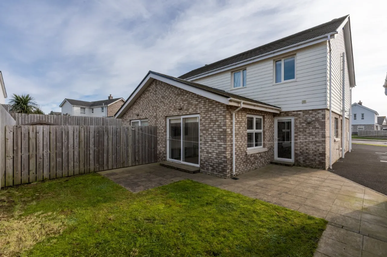 To front and rear in lawns, modern paved patio area, fencing, outside light, outside water tap.