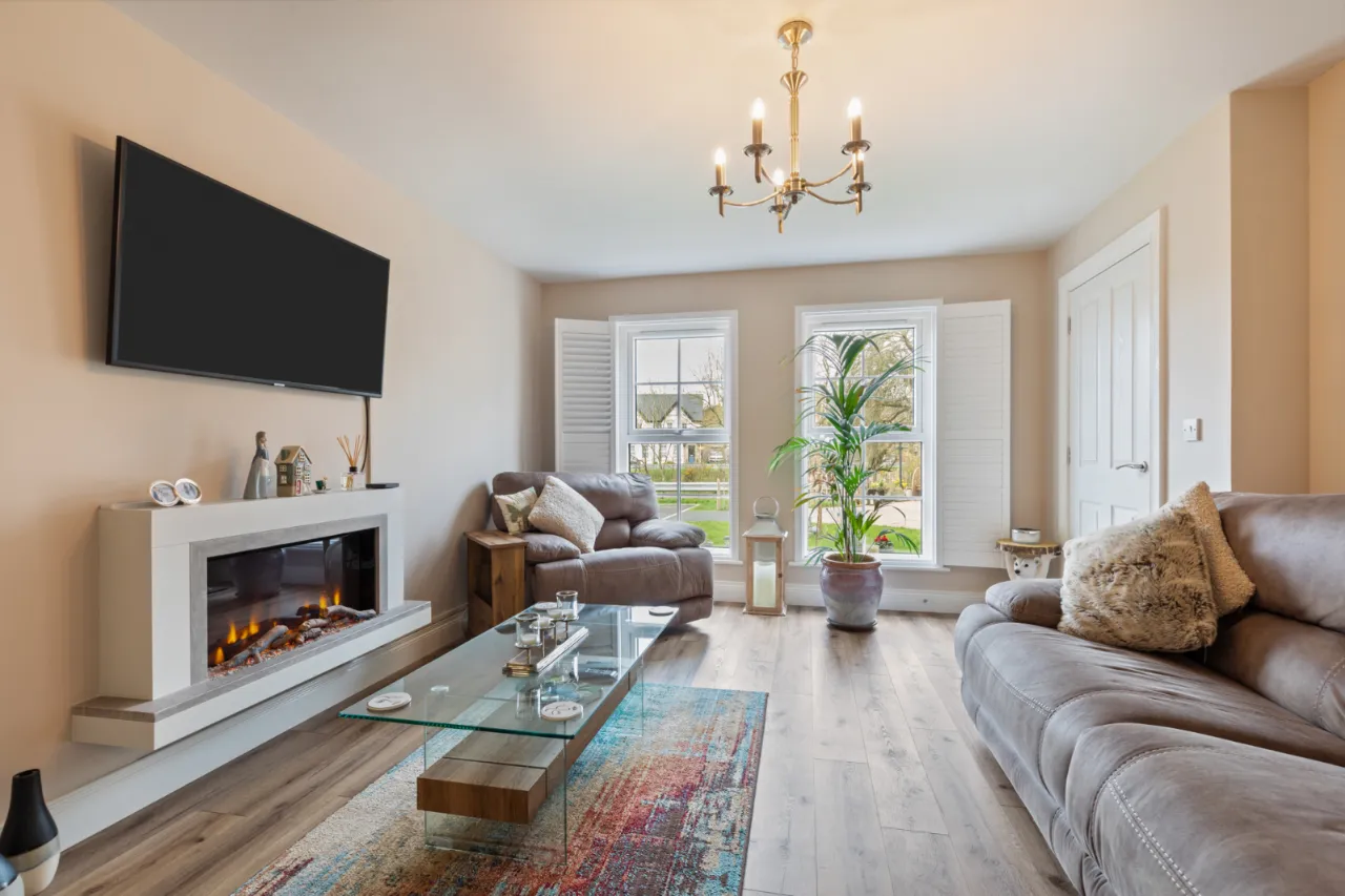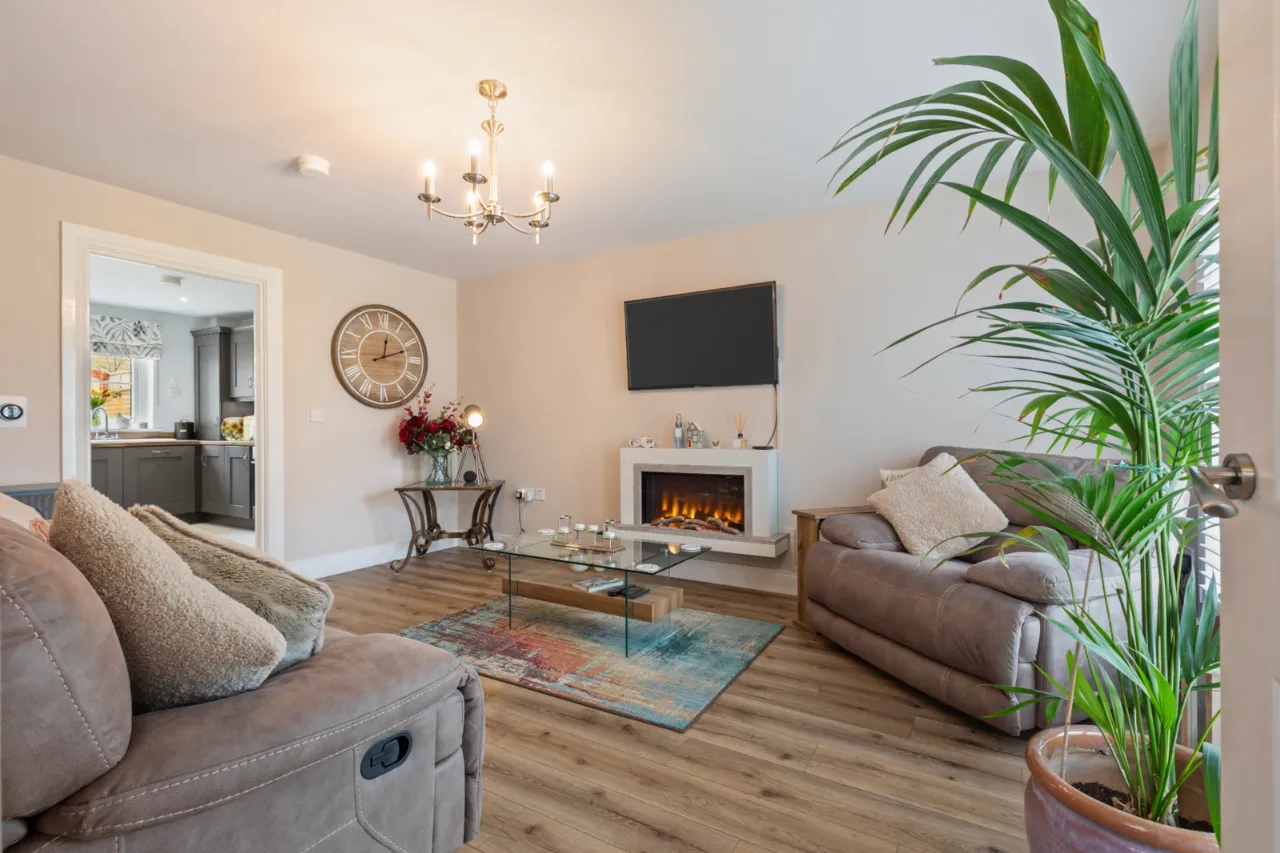 Attractive modern electric fire, TV & telephone point. Luxury vinyl tile flooring, glazed door to: