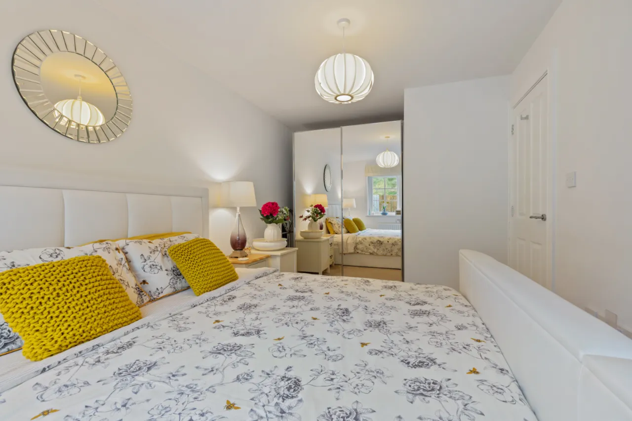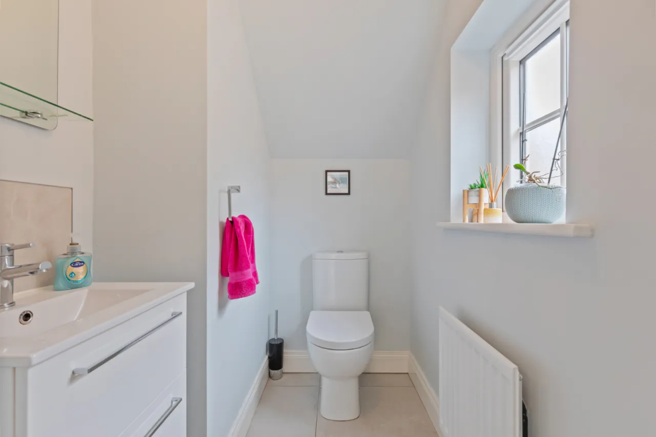 Concealed linen cupboard, access to partially floored roofspace via integrated ladder.