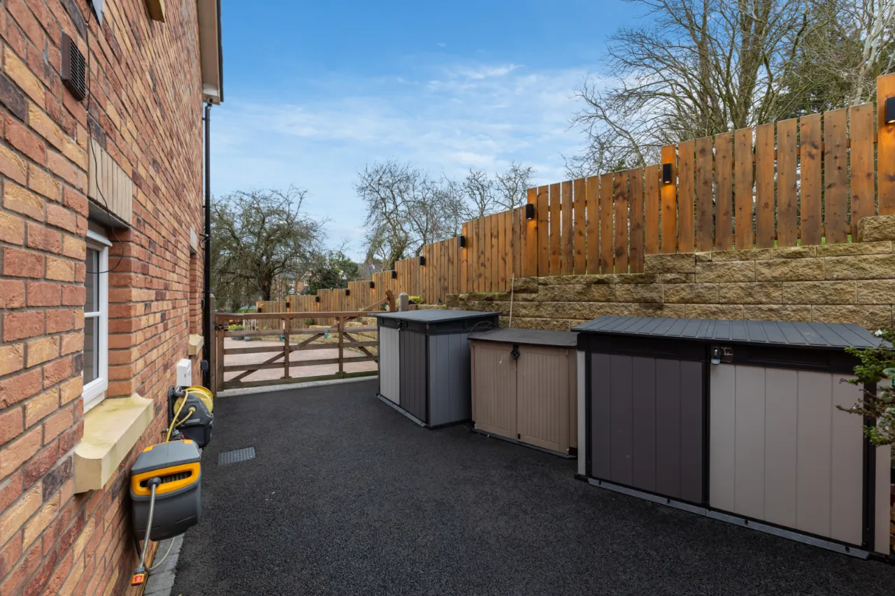 Large brick paved and tarmac driveway to front and side of property with 5 bar timber field gate.