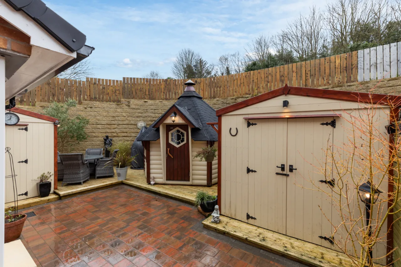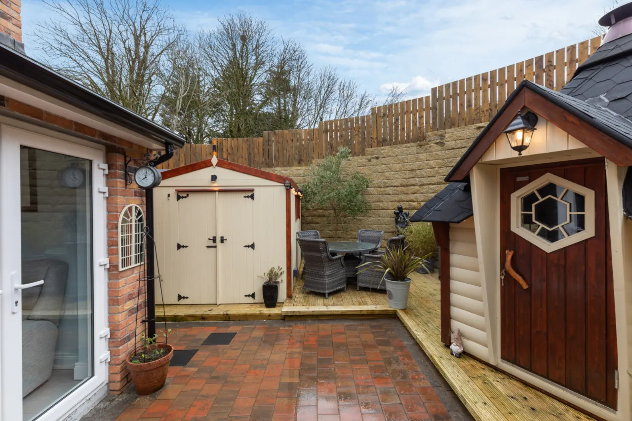 To front, side and rear laid out in lawns with flowerbed, large brick paved patio, extensive timber decking area, outdoor power sockets, feature garden wall, fencing, outside lights, outside water tap, access to side for cars etc.