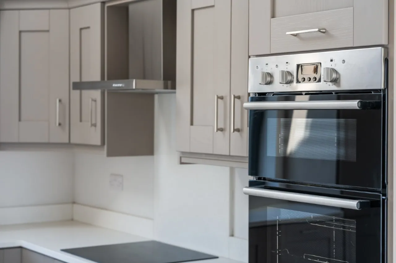 – Integrated branded electrical appliances to include electric hob, eye level double electric oven (site specific), extractor unit, fridge/freezer and dishwasher