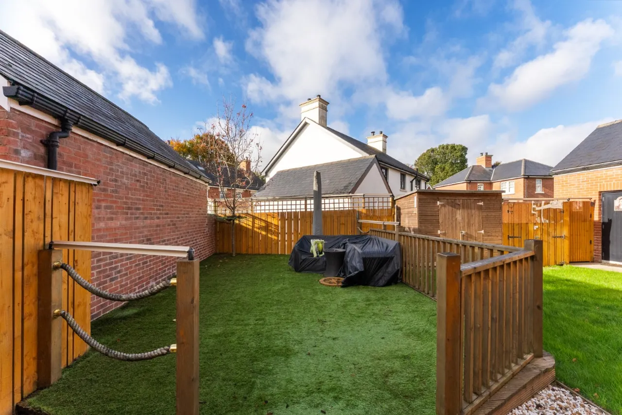 Occupying a prime corner plot in the development. The property has tarmac driveway parking to the front and side and an electric vehicle charge point. Front garden in lawn. Back garden in lawn with raised, decked sitting area with artificial grass. Outside tap to side of property and outside power supply at rear.
