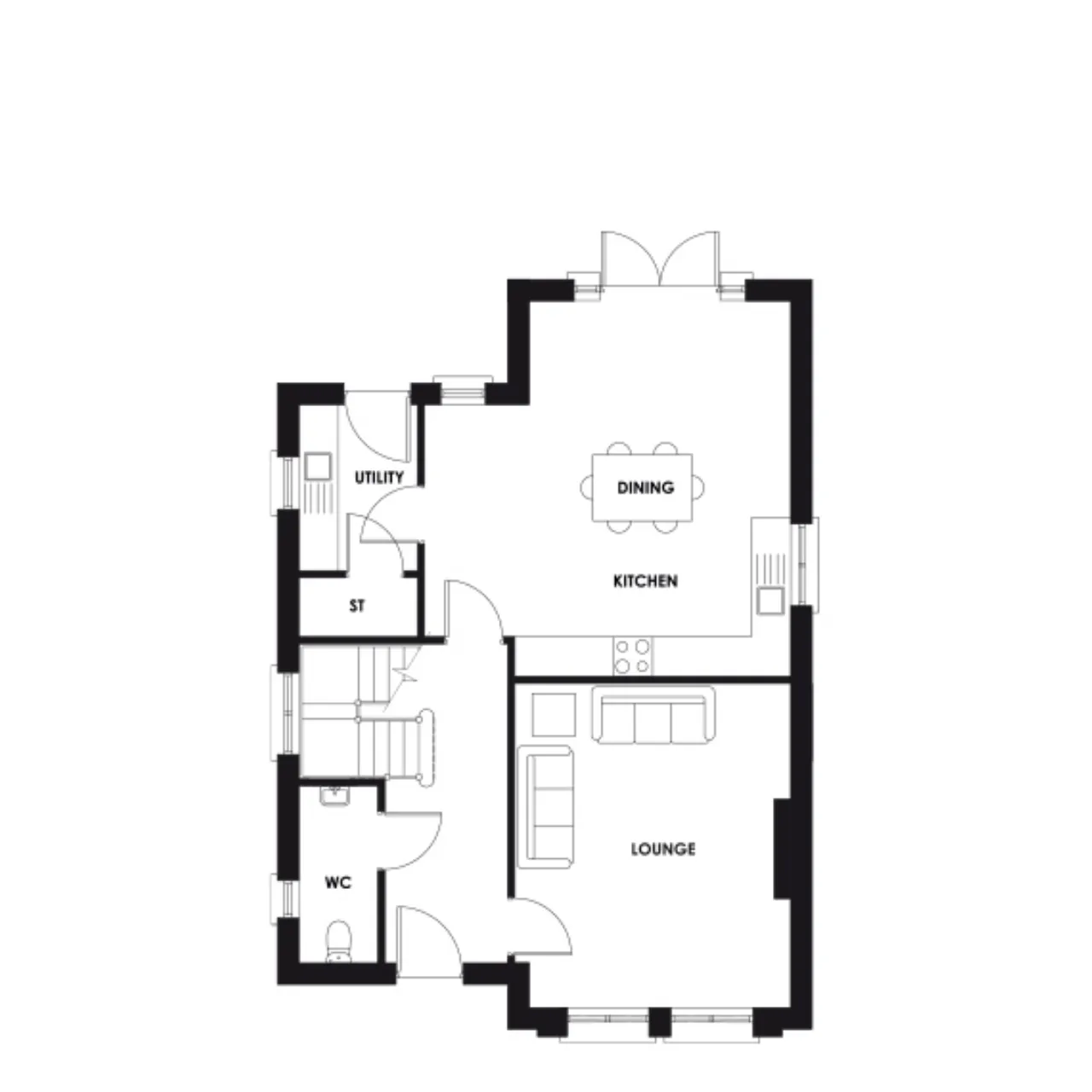 Integrated appliances including built in oven, electric hob, extractor hood, dishwasher, fridge freezer and washing machine or washer/ dryer depending on house type