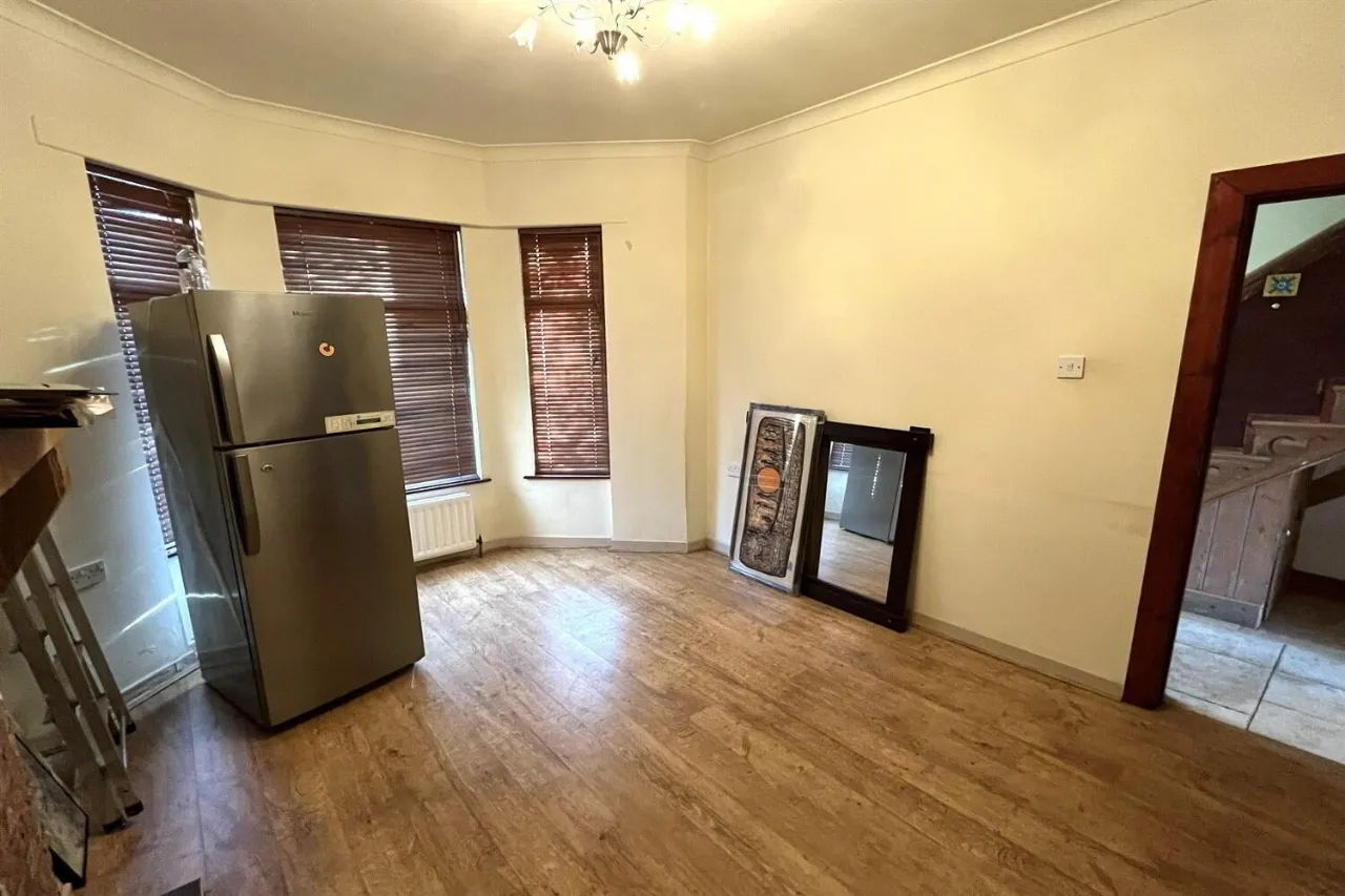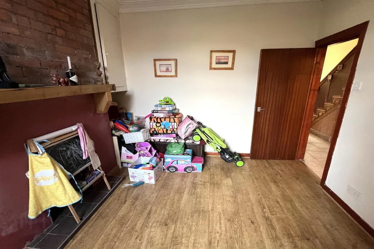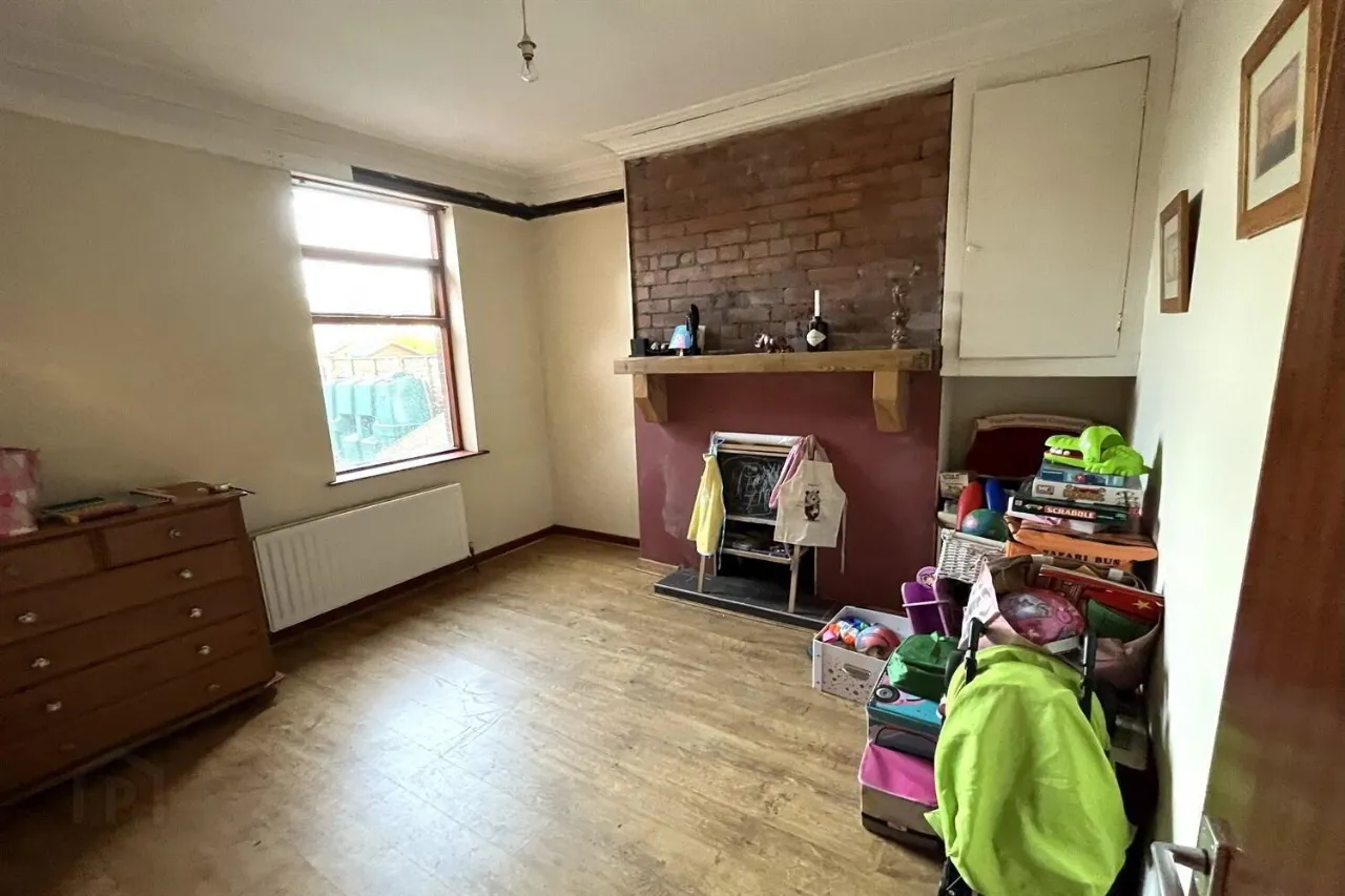 Laminated timber flooring, double panelled radiator x 2, brick fire place with tiled hearth.
