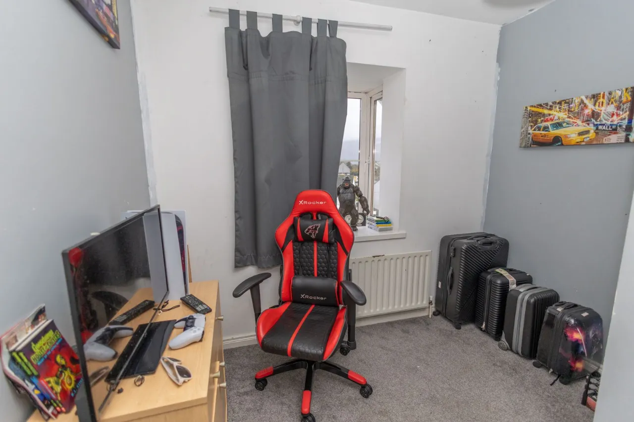 Located to the rear of the property. Carpet flooring. Built-in storage.