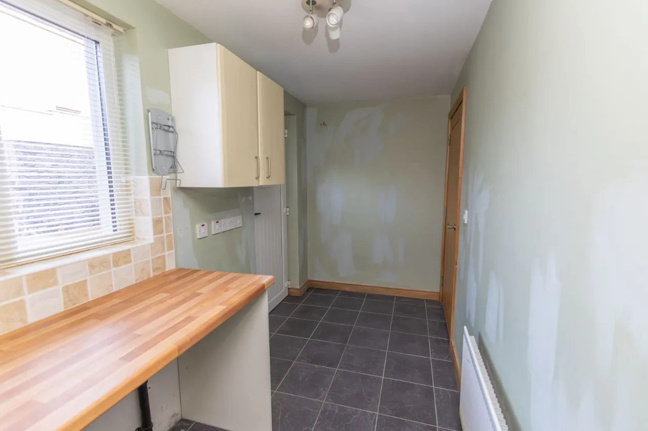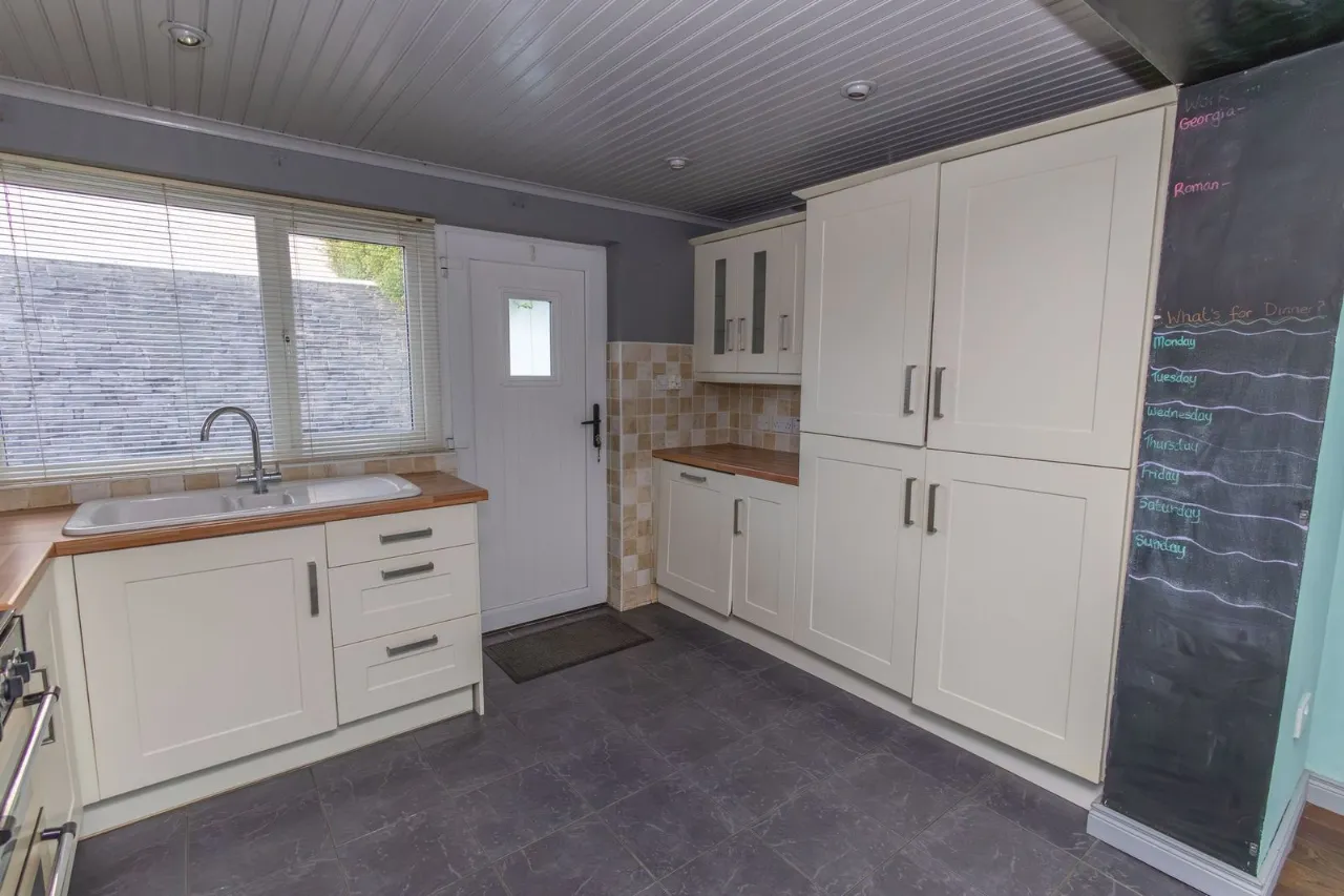 The home benefits from oil-fired central heating and double-glazed windows throughout, ensuring warmth and energy efficiency. A solid fuel fire in the living area adds a cozy touch. Off-street parking provides convenience, and the property also features an enclosed rear area, ideal for children, pets, or outdoor entertaining.