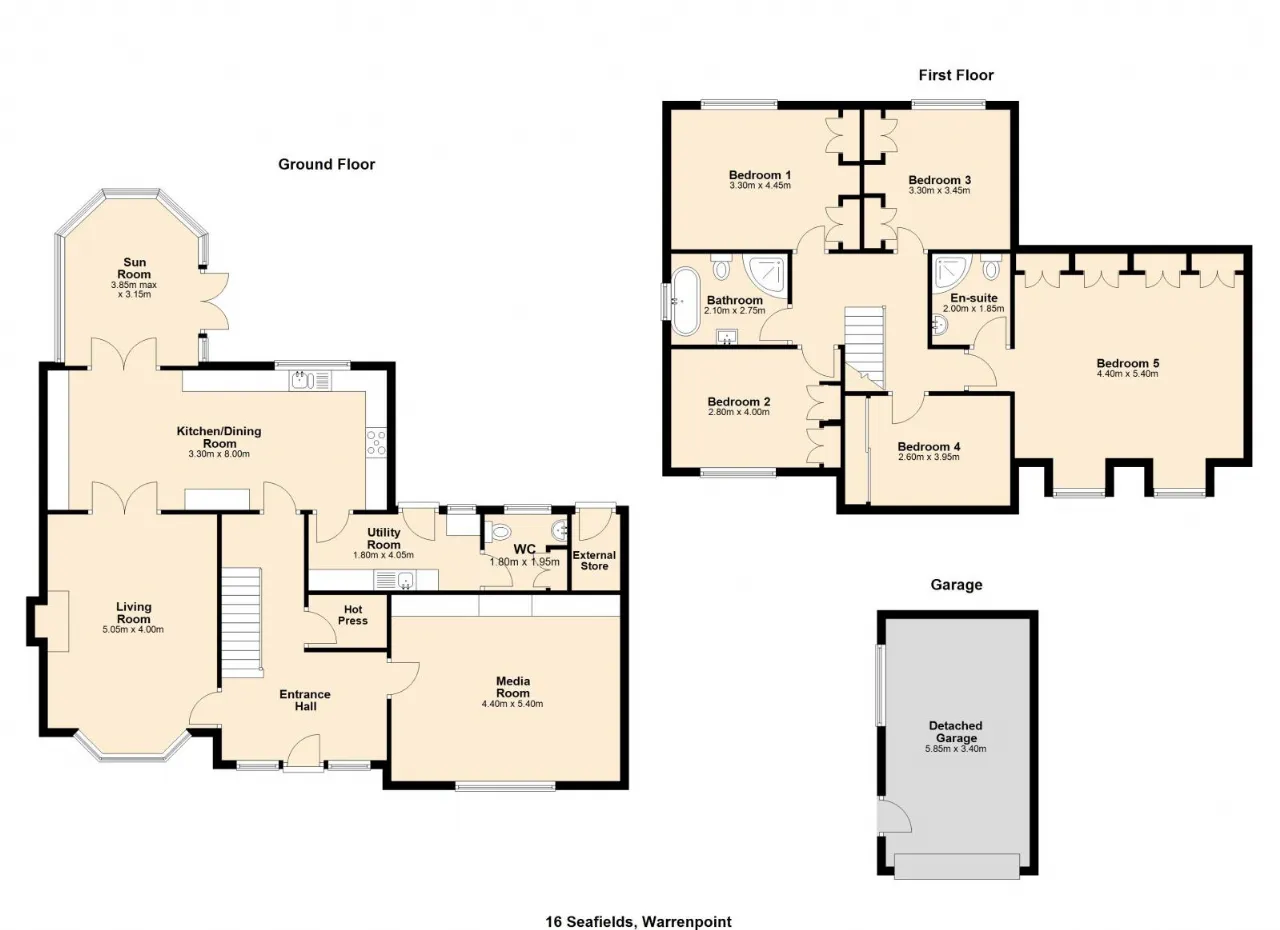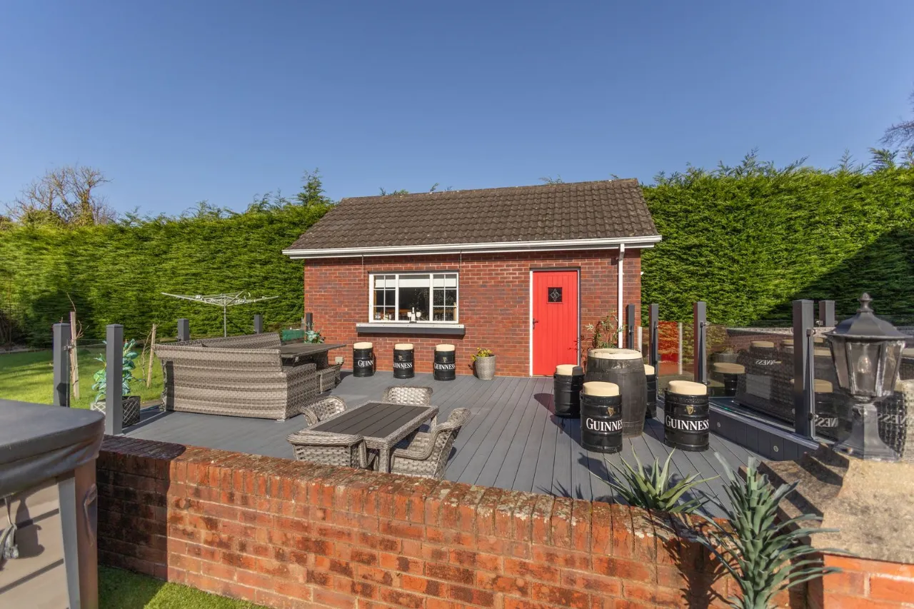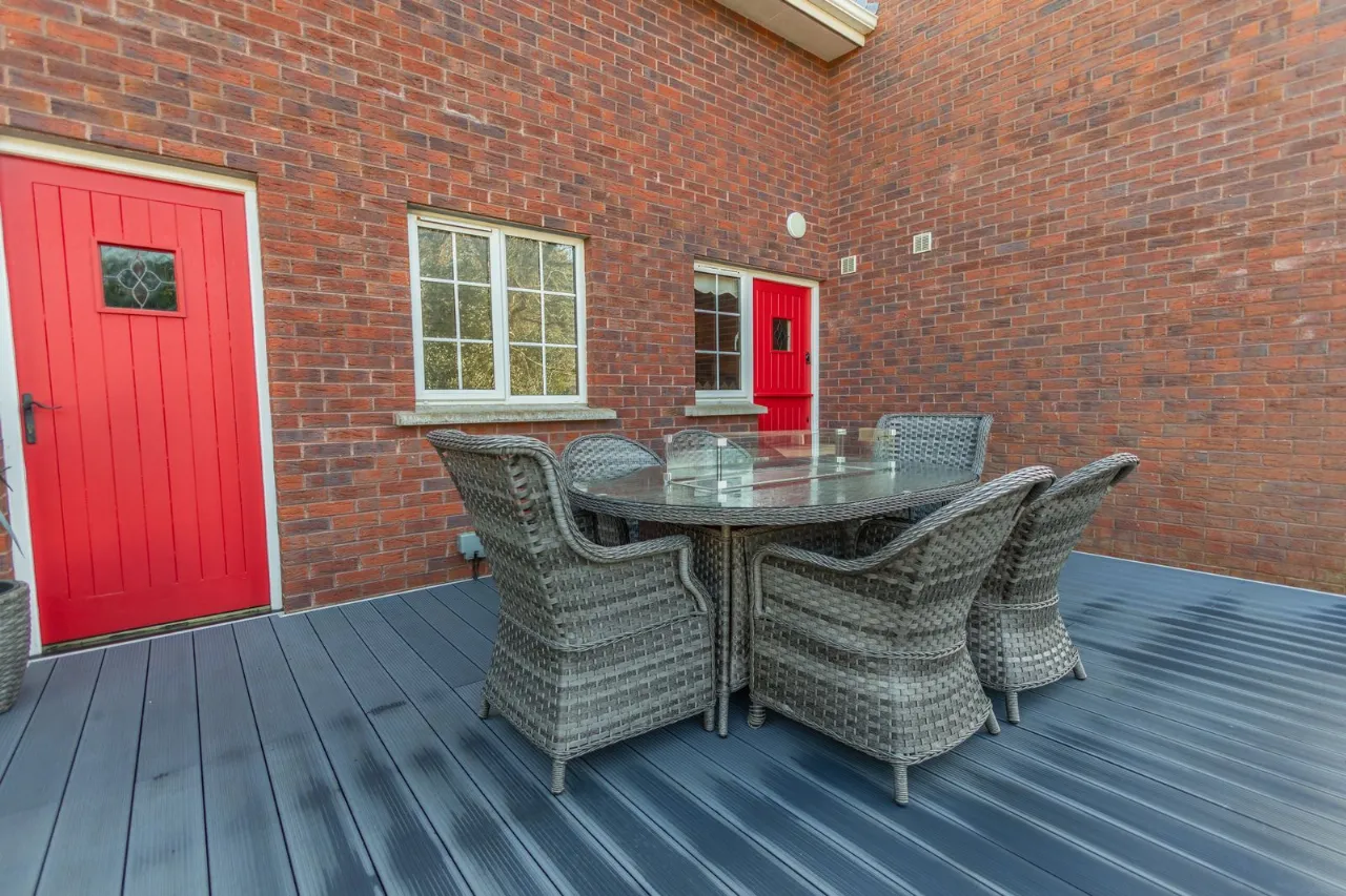 Corner site with enclosed gardens to the front, side and rear of property. Composite decking patio area to rear. Tarmacadem drive to front with electric gates.