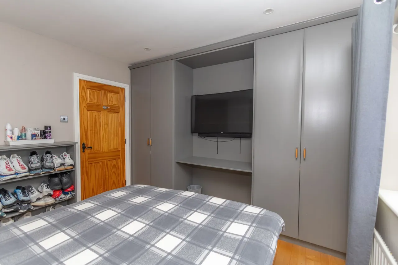 Located to the rear of the property. Laminate flooring. Recessed ceiling lights. Built in wardrobes with a media console.