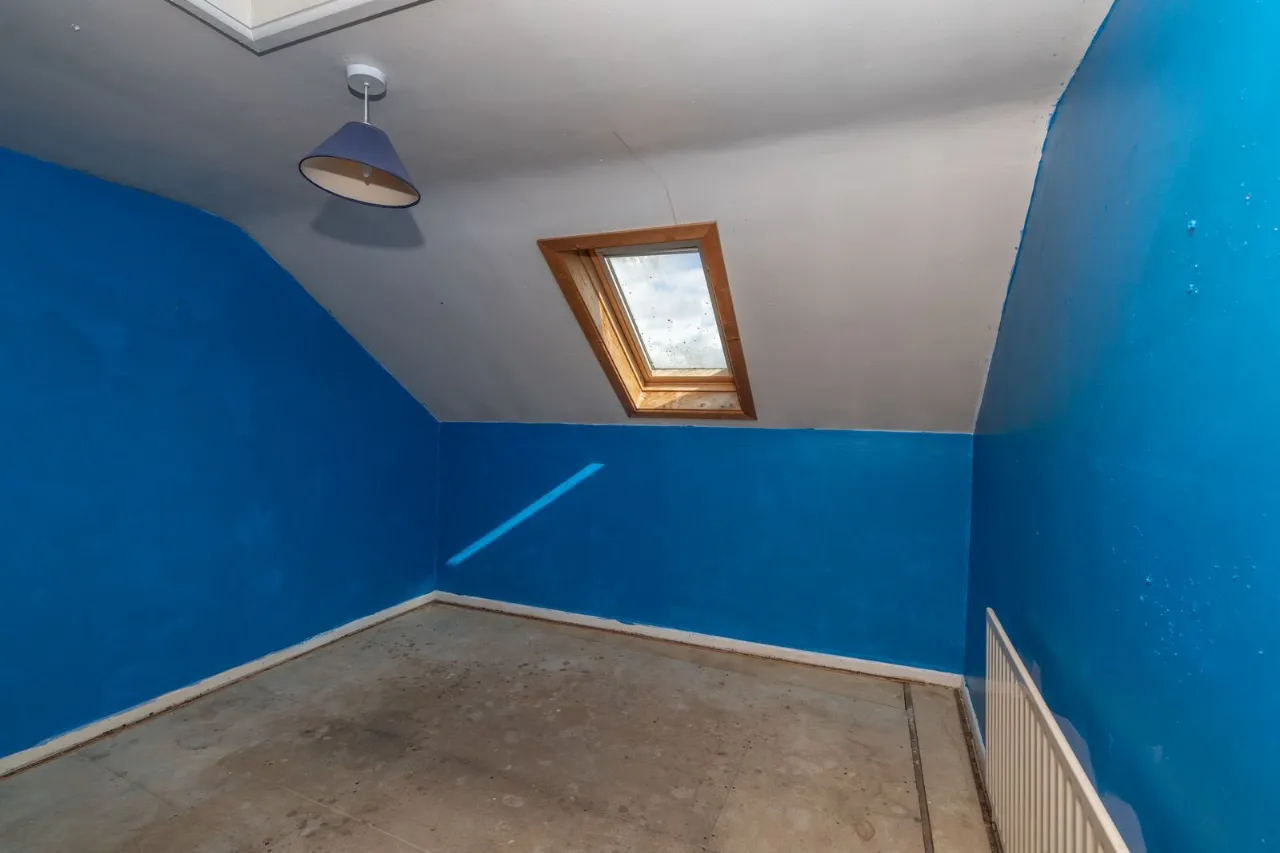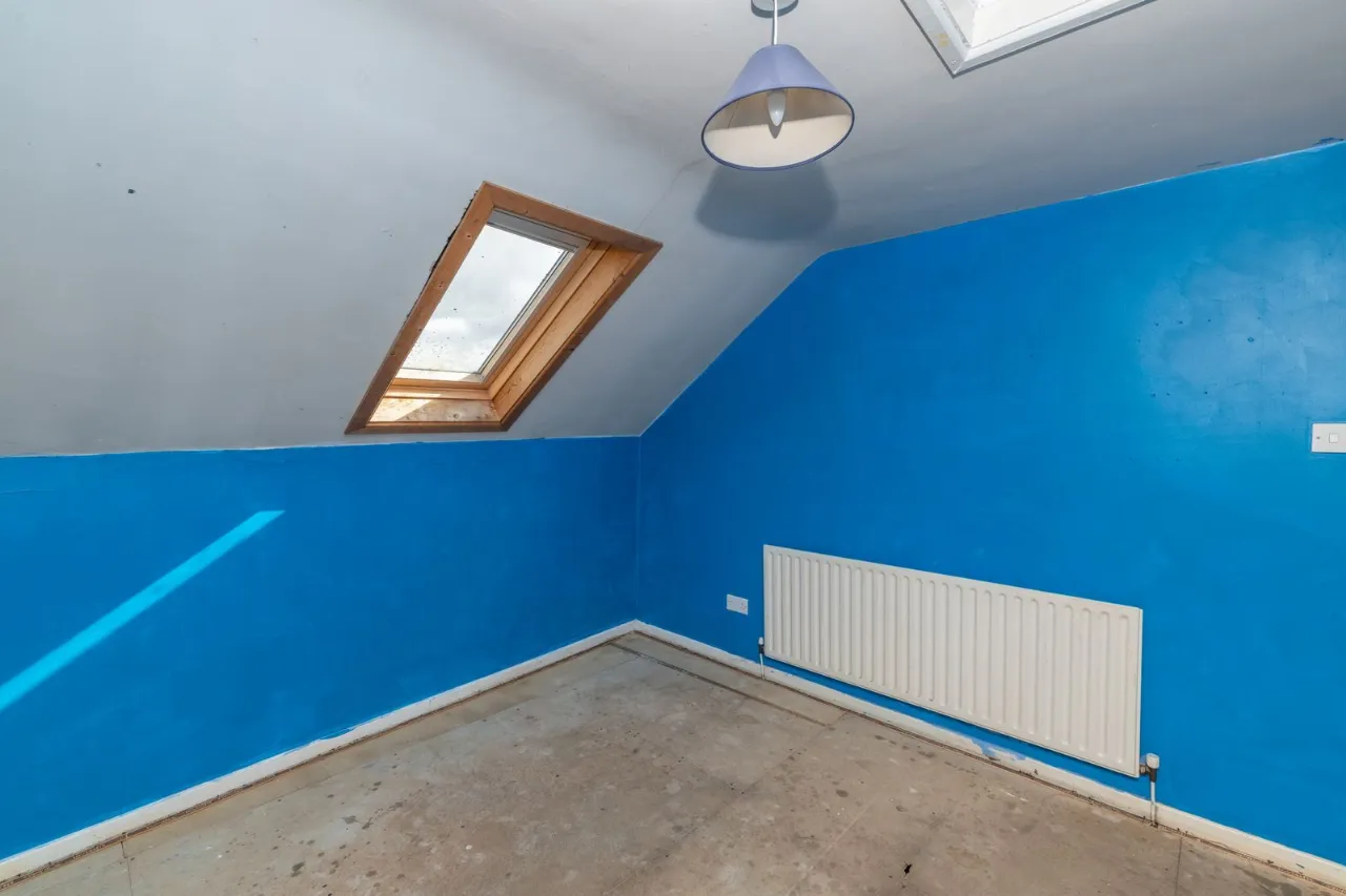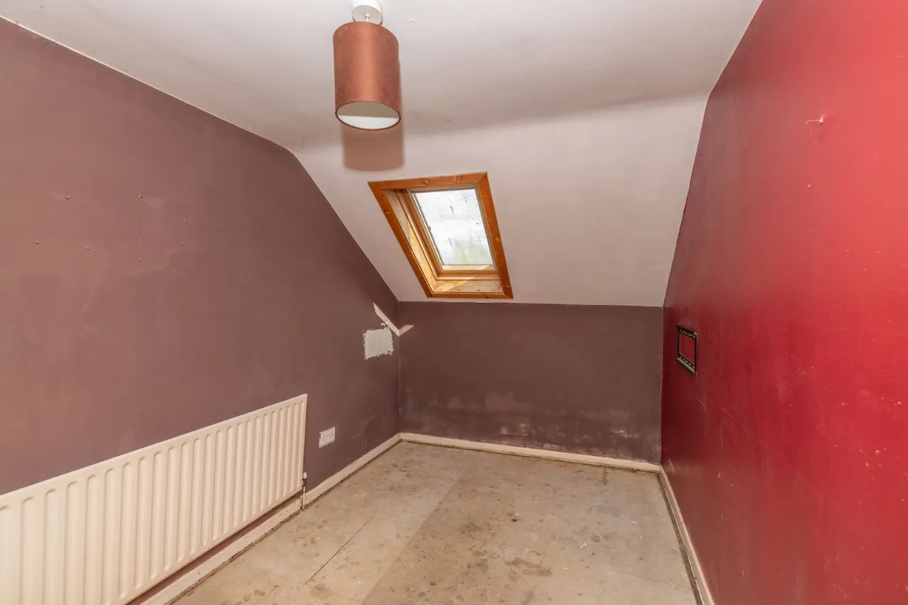 Located to front of property. 2 double sockets. Large radiator. Loft hatch