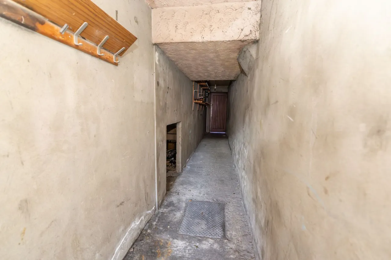 Door leading into main hallway. Tiled flooring. Teleh=phone point. Double radiator