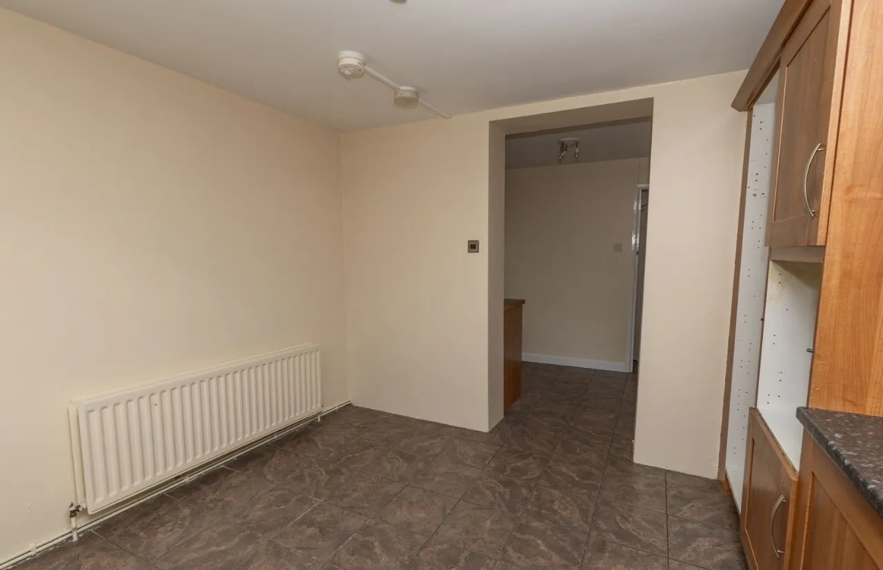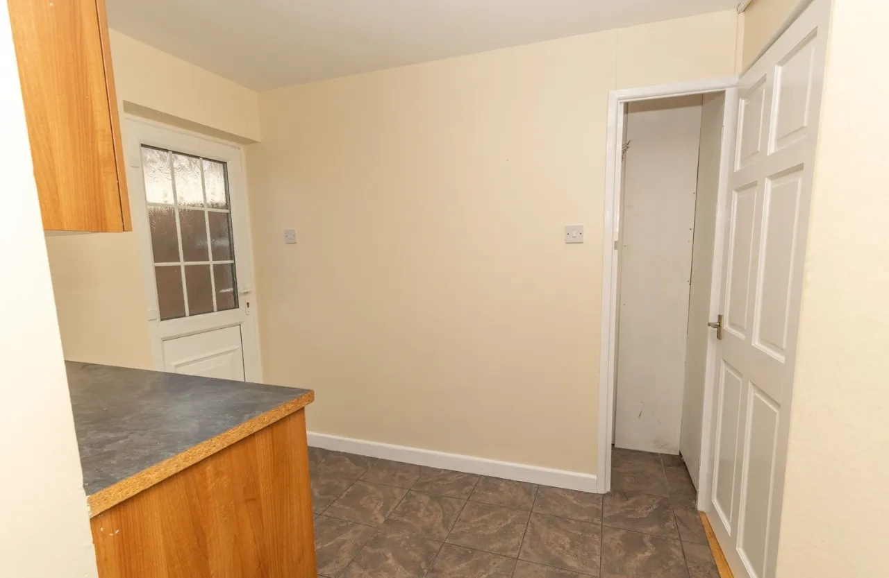 Range of high and low level units. Tiled flooring. Gas hob and extractor fan. Stainless steel sink unit with mixer taps. Plumbed for washing machine/Dish Washer