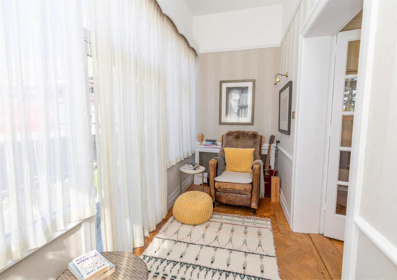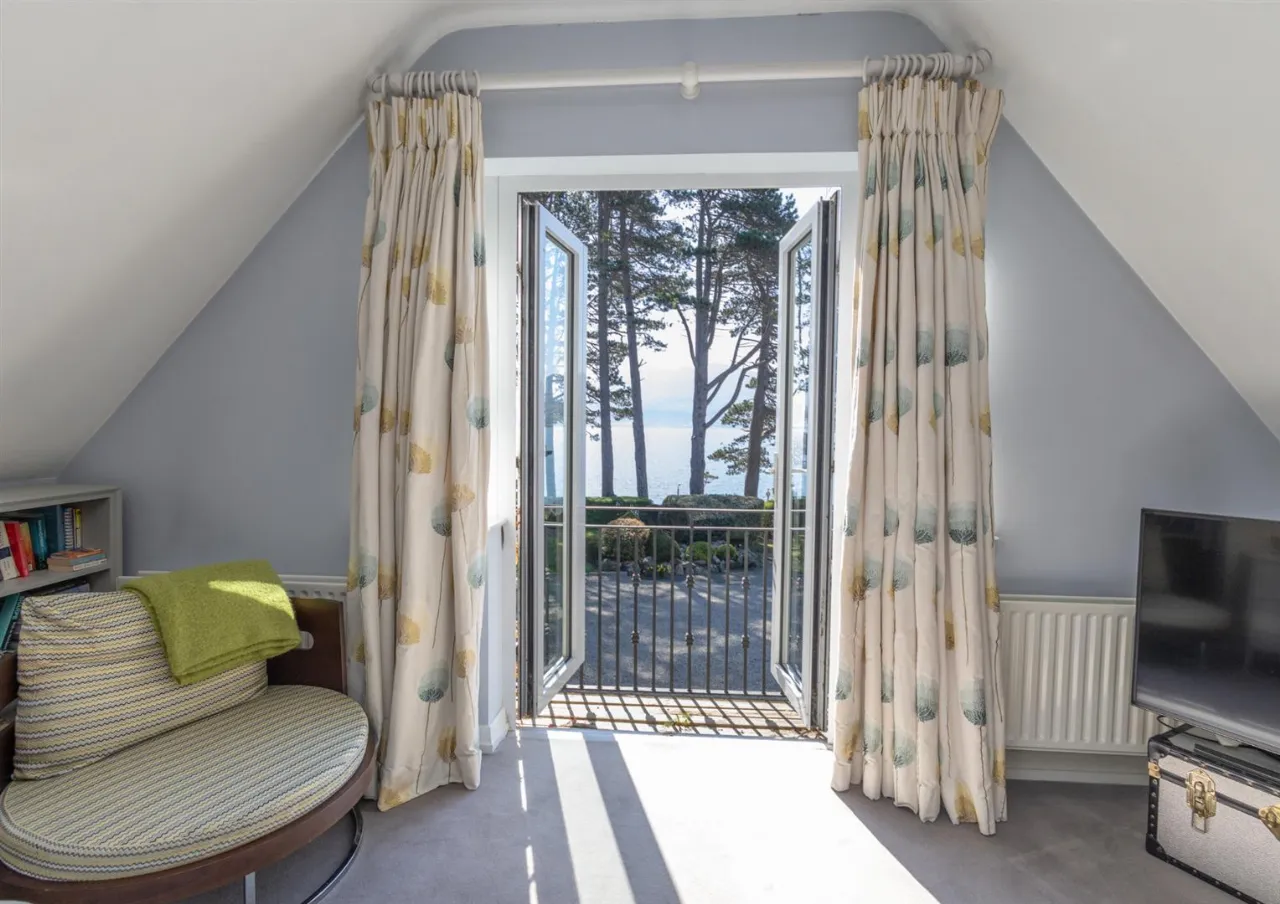 Double aspect with sea view to front and double doors to terrace