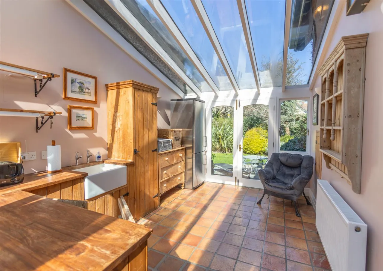 conservatory style glazed roof. Double doors to northern terrace