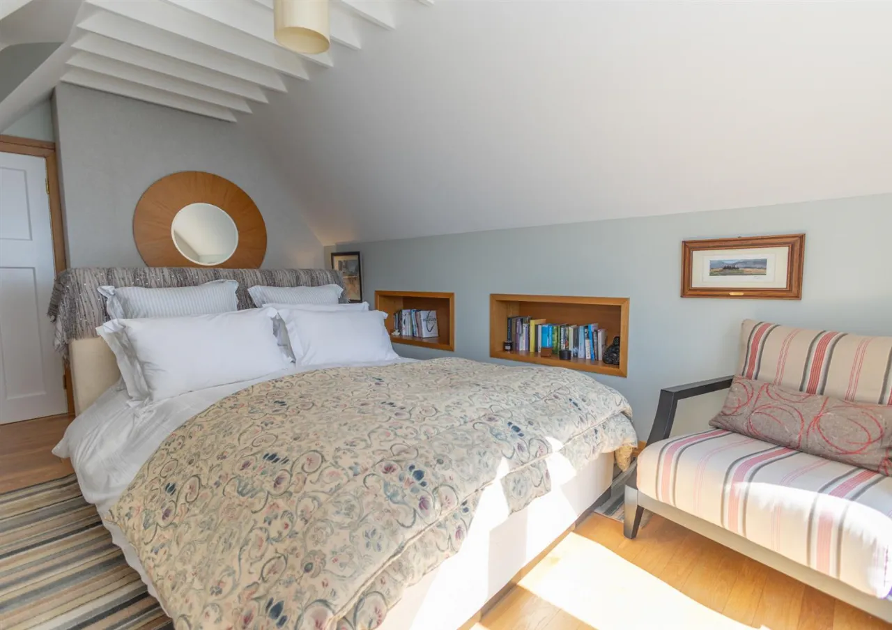 Solid oak flooring. South facing window overlooking Carlingford