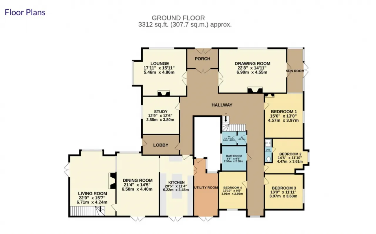 DRAWING ROOM: 22'7" x 14'11" (6.88m x 4.55m)