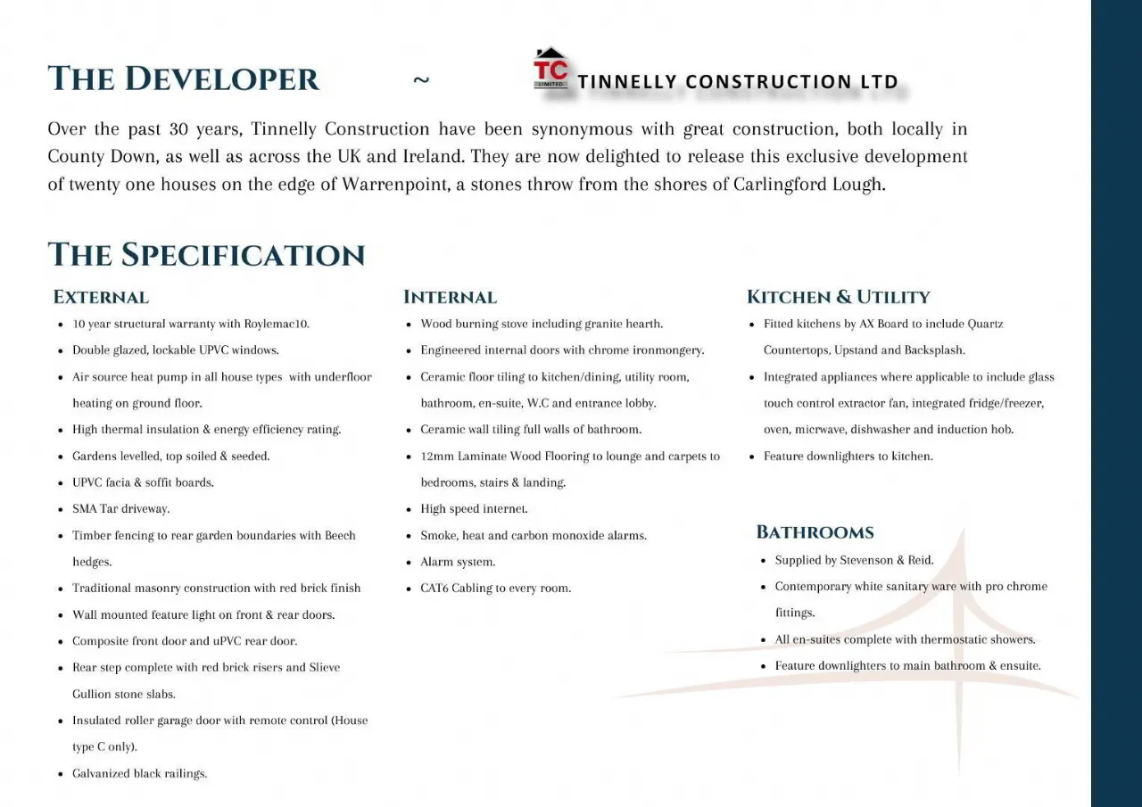 Ceramic floor tiling to kitchen/dining, utility room, bathroom, en-suite, W.C and entrance lobby.