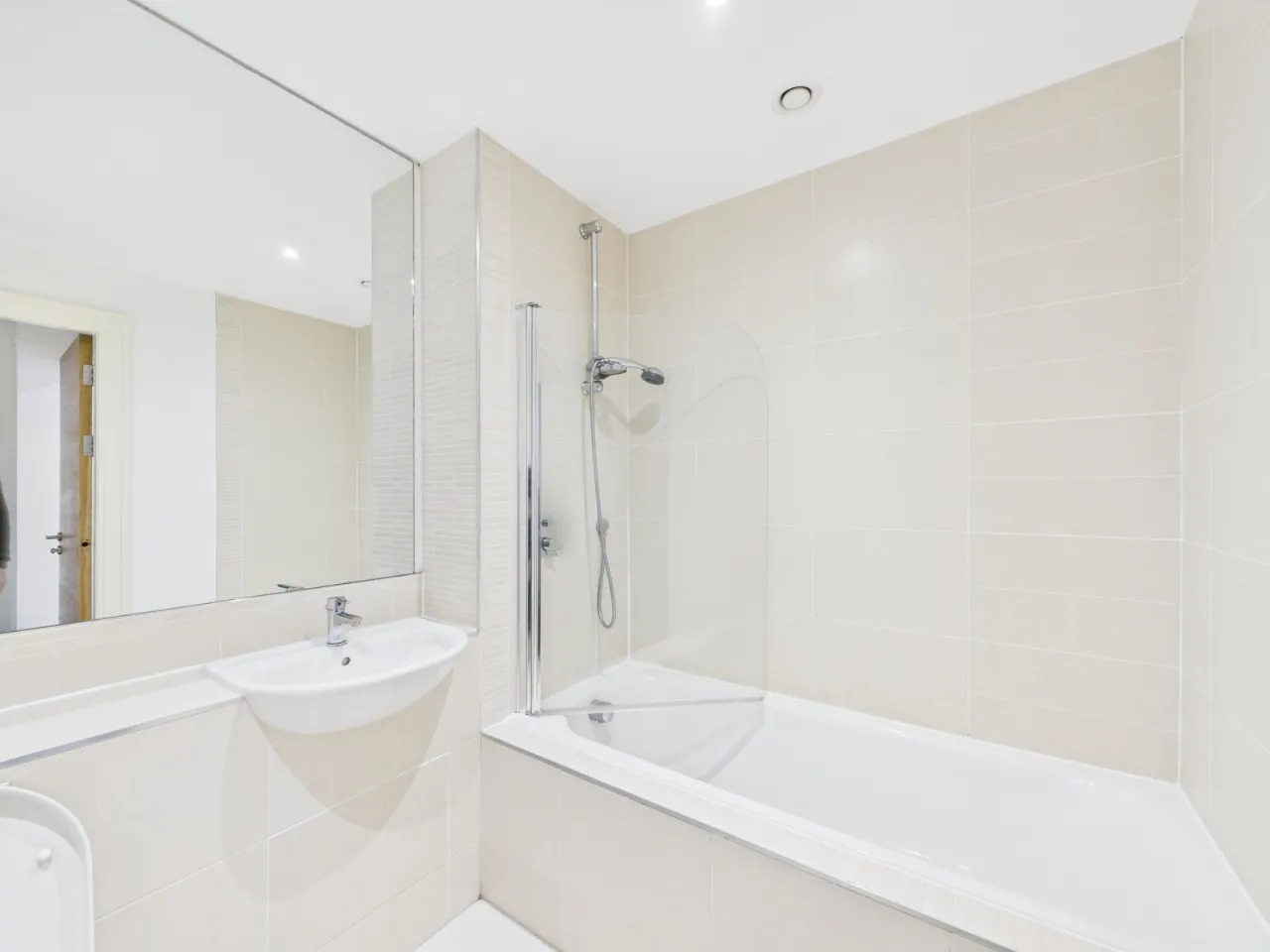 The bedroom is well-proportioned and benefits from good storage, while the contemporary bathroom is finished with modern fittings.