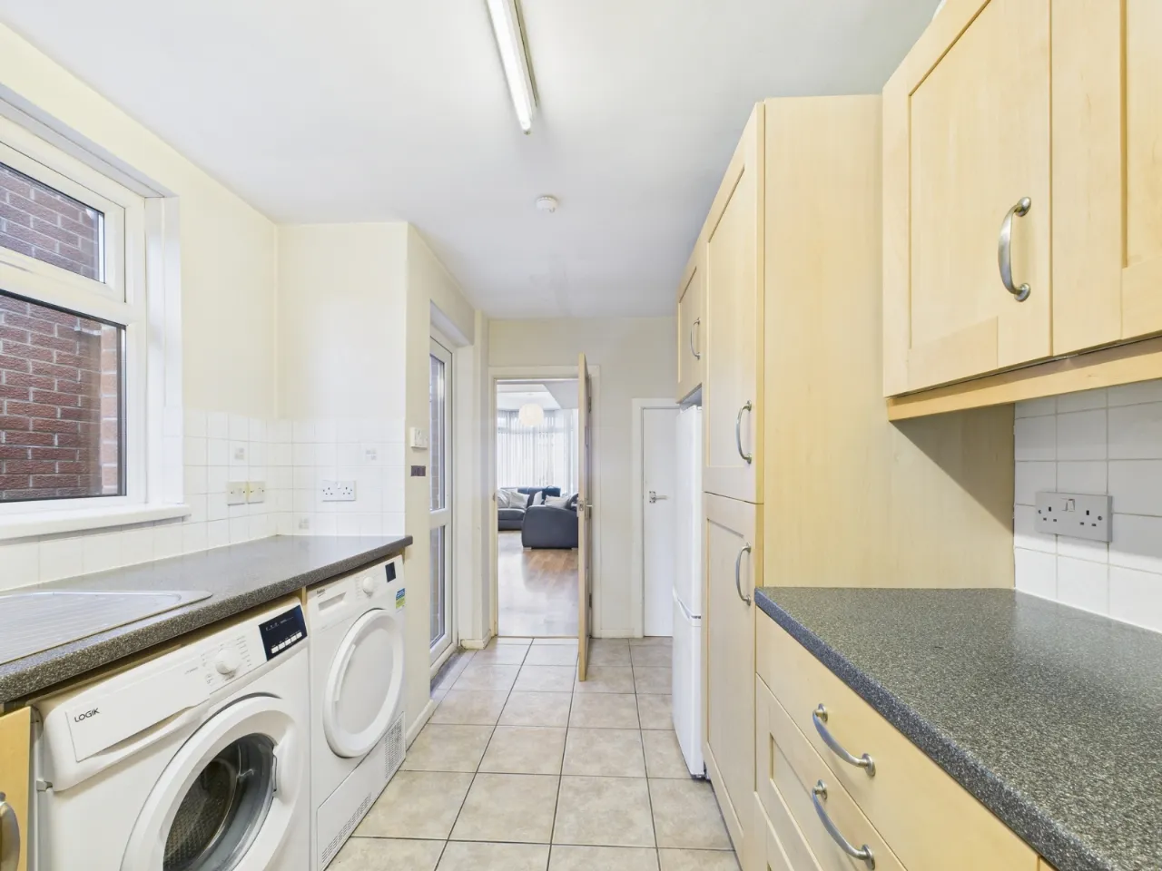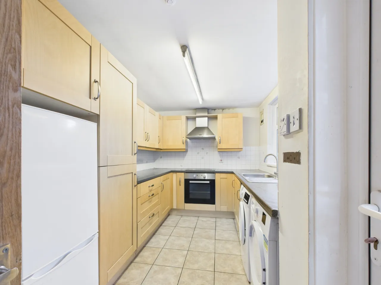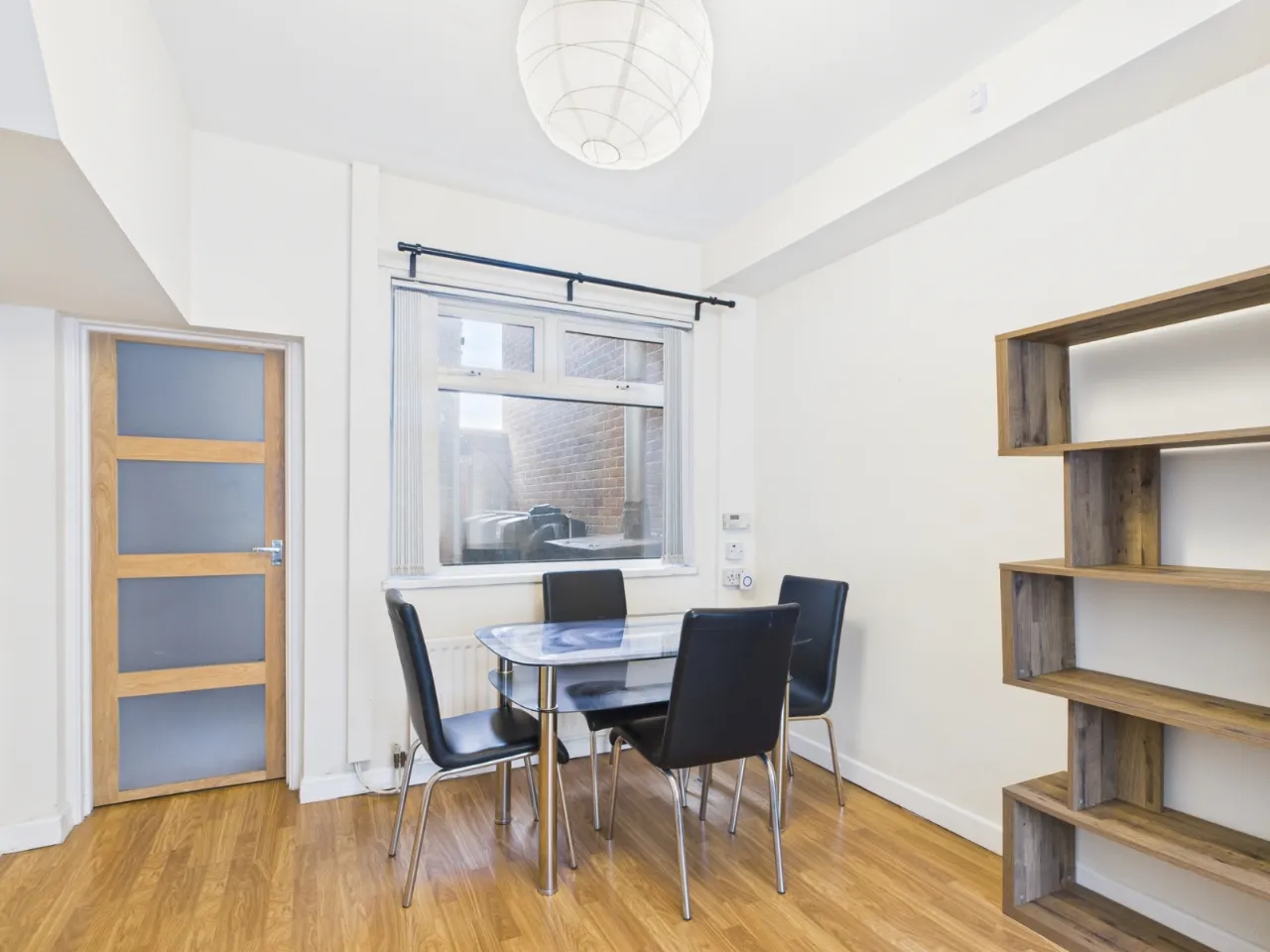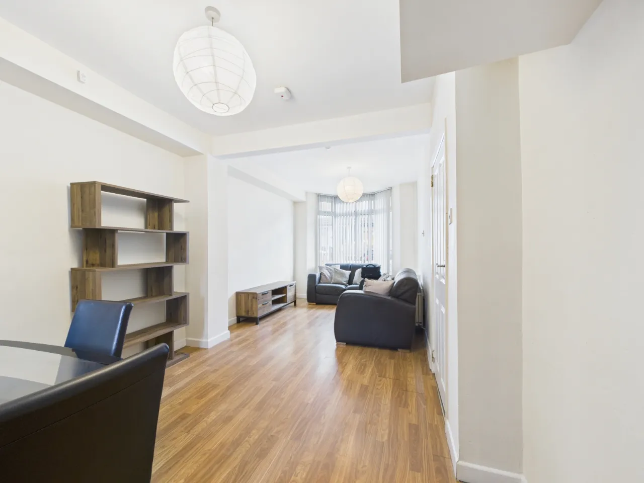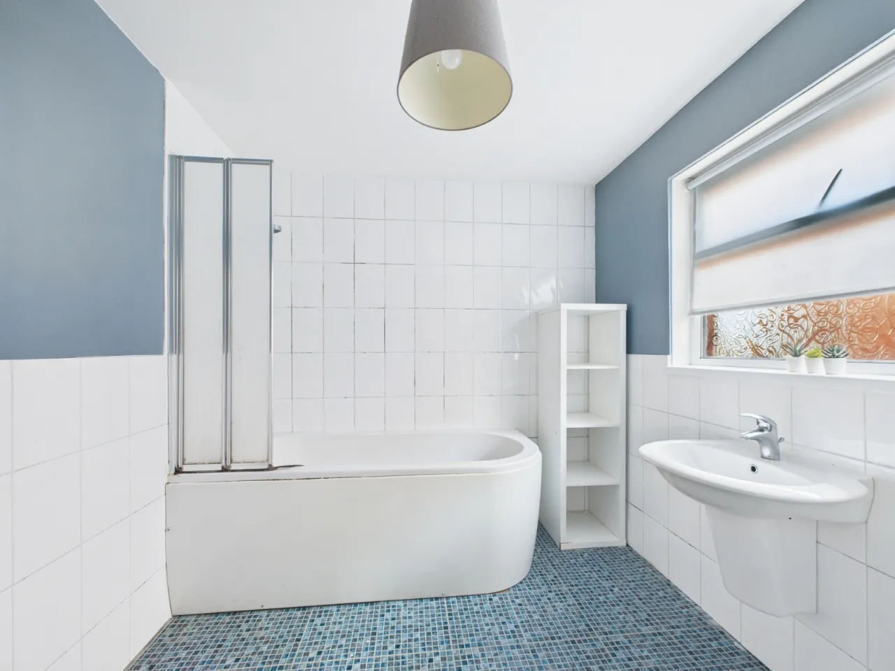 This charming two-bedroom, one-bathroom terraced house in East Belfast is offered furnished, with the bedrooms partly furnished. It features a welcoming living room, a kitchen, and a bathroom with a shower over the bath.