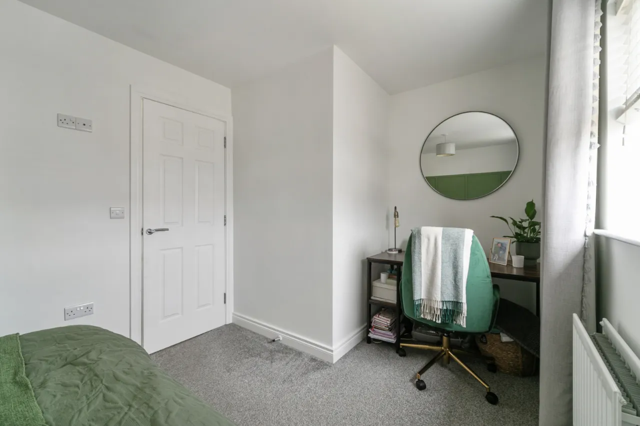 Upstairs, there are two well-proportioned bedrooms, both offering comfort and style, along with a contemporary main bathroom fitted with a modern white suite.
