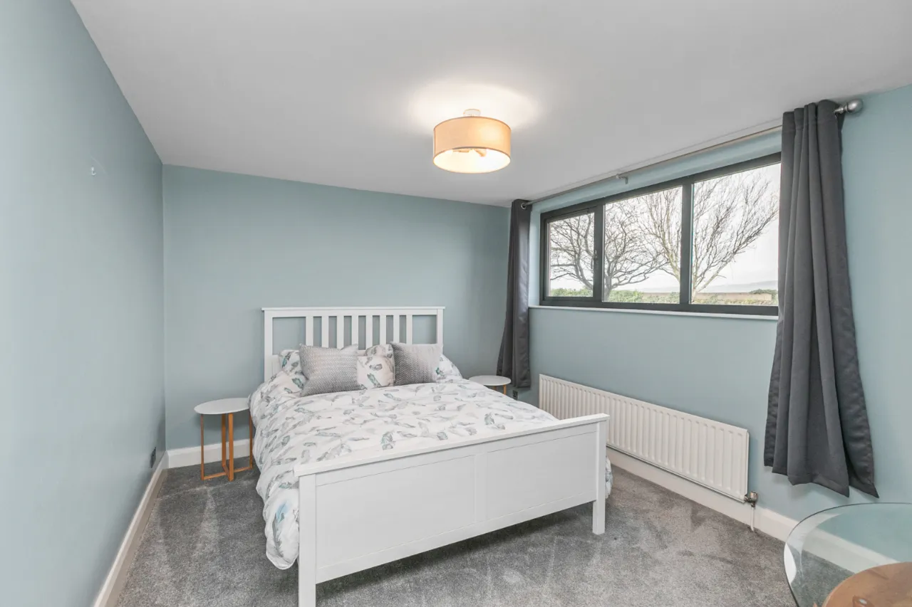 Fitted sliding wardrobes, freestanding bath with feature chrome mixer tap and tiled surround, panoramic sea views. Built in shelving, low voltage spot lights.
