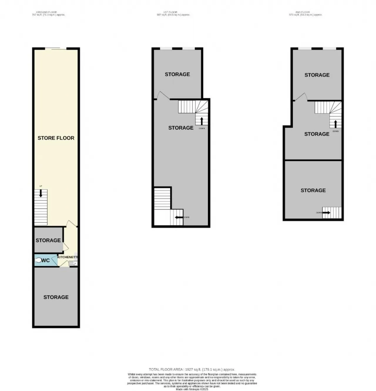 At ground floor the premises offers an open plan store , with a customer service counter. At first floor level, there are three storage rooms, a kitchenette and W.C.
