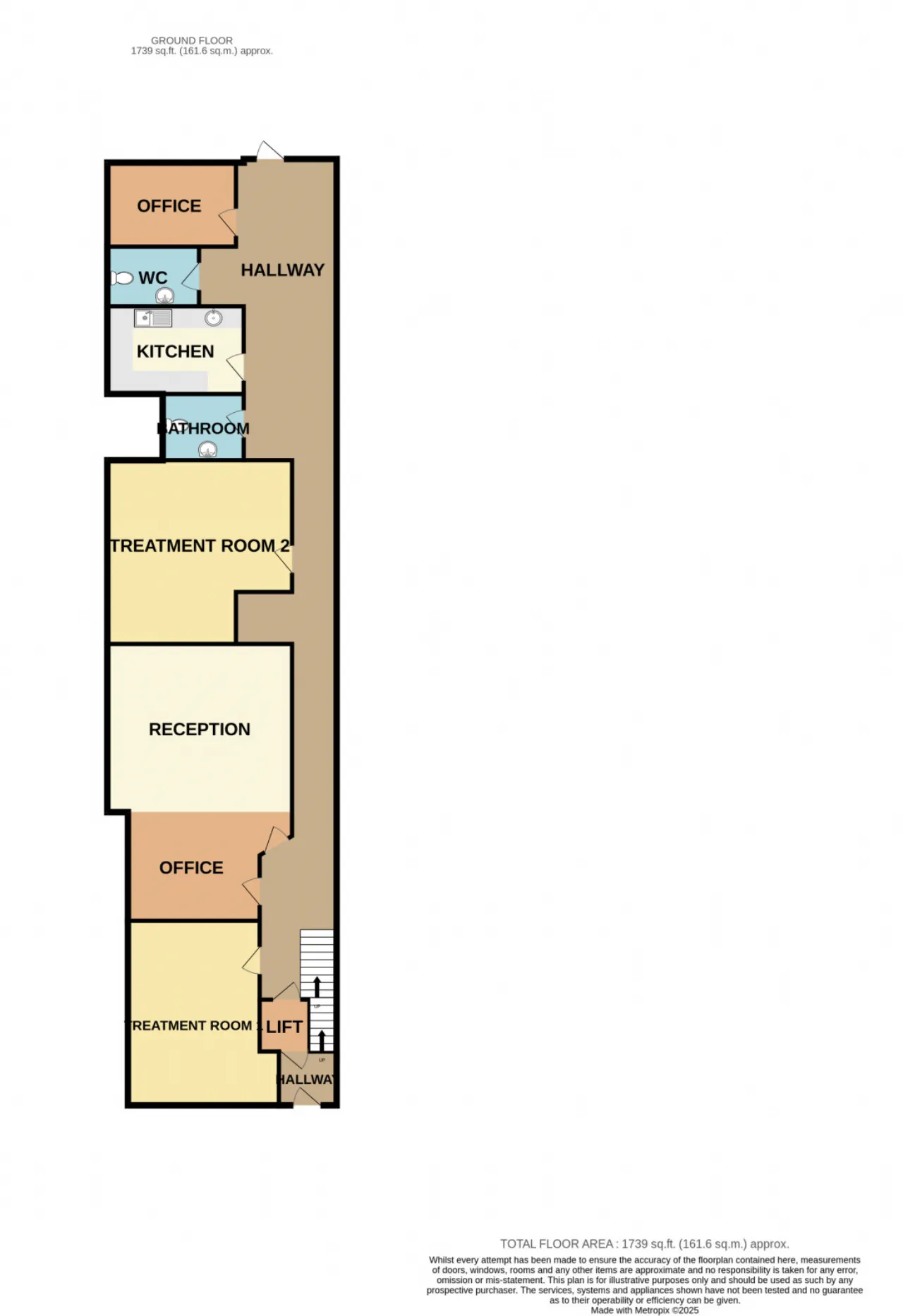 A former dental surgery situated on the 1st Floor offers a well-appointed commercial space extending to approximately 1,739 sq. ft. The premises is accessed via a secure entrance with lift access suitable for disabilities, ensuring easy and inclusive entry for clients, staff, and visitors.