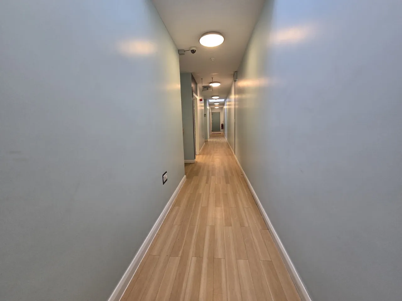 Laminate floor, floor fitted Mechanical, electrical and plumbing (MEP), Automatic sensor lights, air conditioning, water supply.