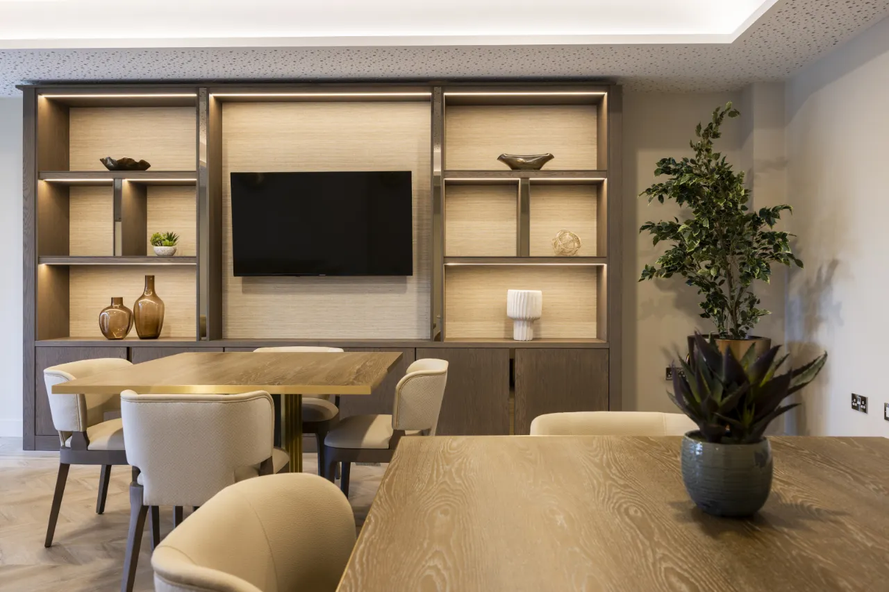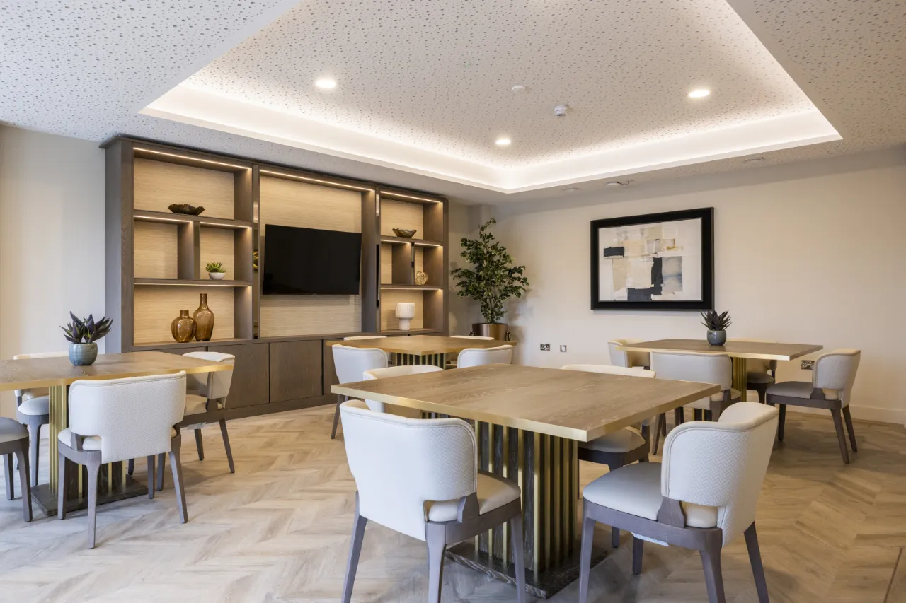 - The room is designed to be utilised as a dining room for hosting larger catered events should you wish to host outside your apartment.