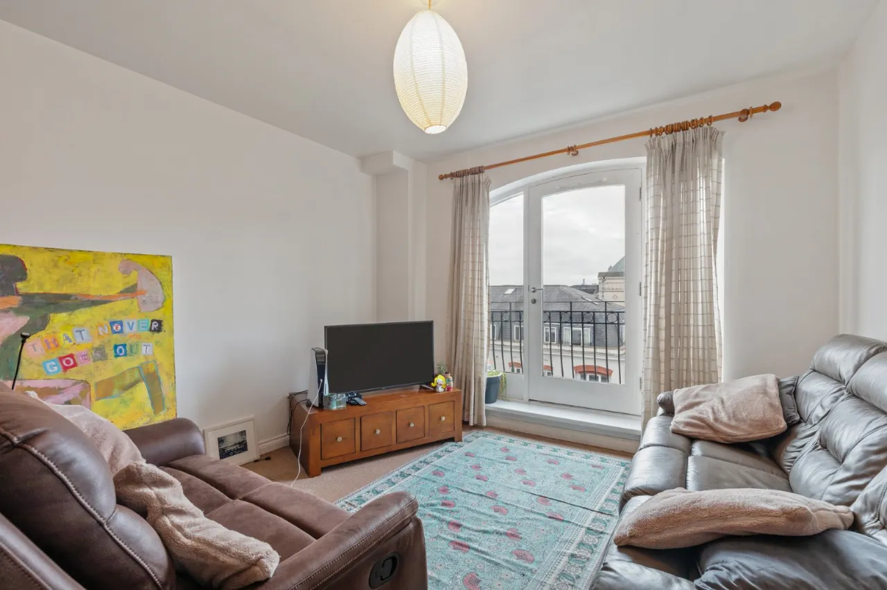 Generous living room with a fantastic outlook onto St Annes Square and the Cathedral