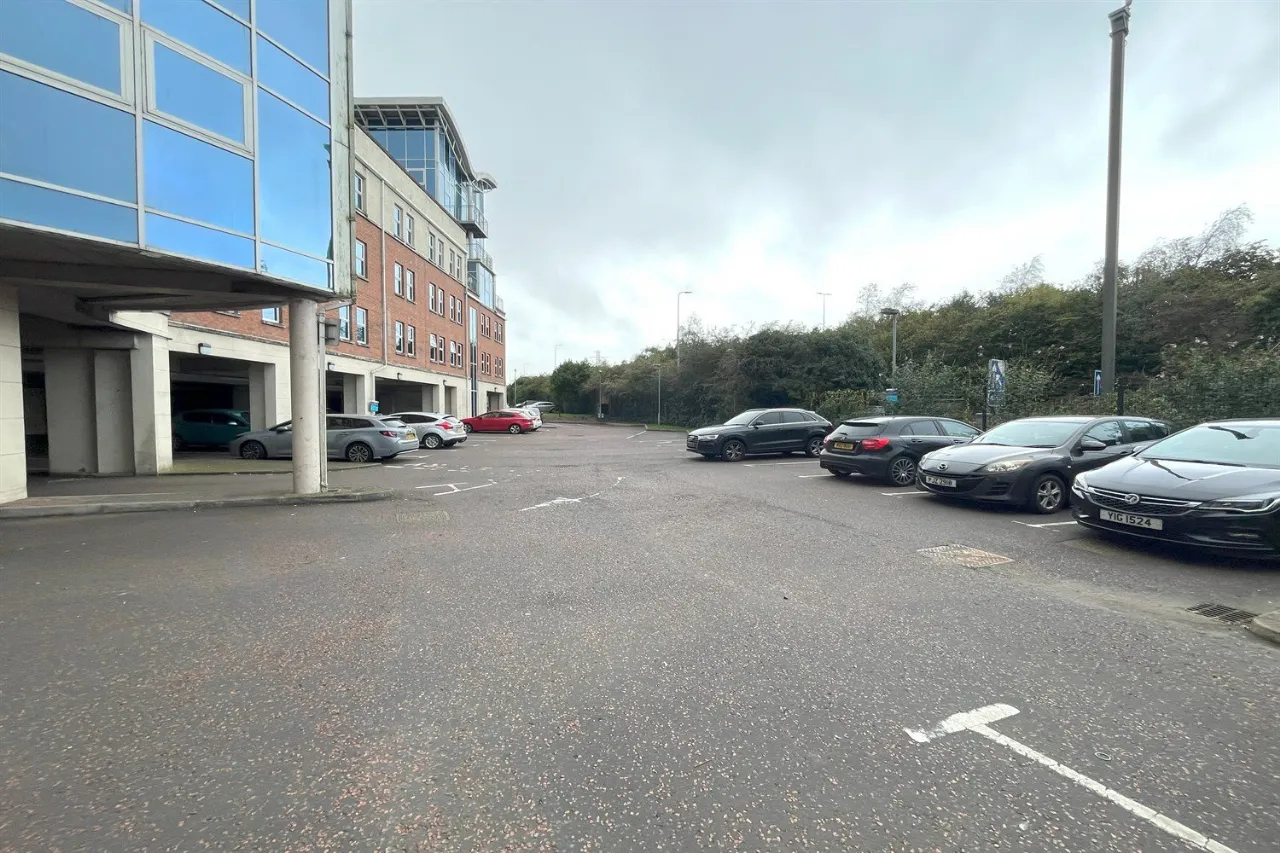 Communal gardens and parking.