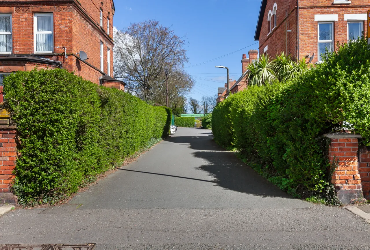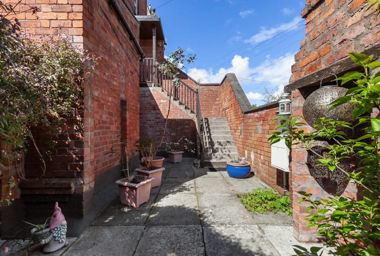 Enclosed rear yard with bin storage and outside tap.
