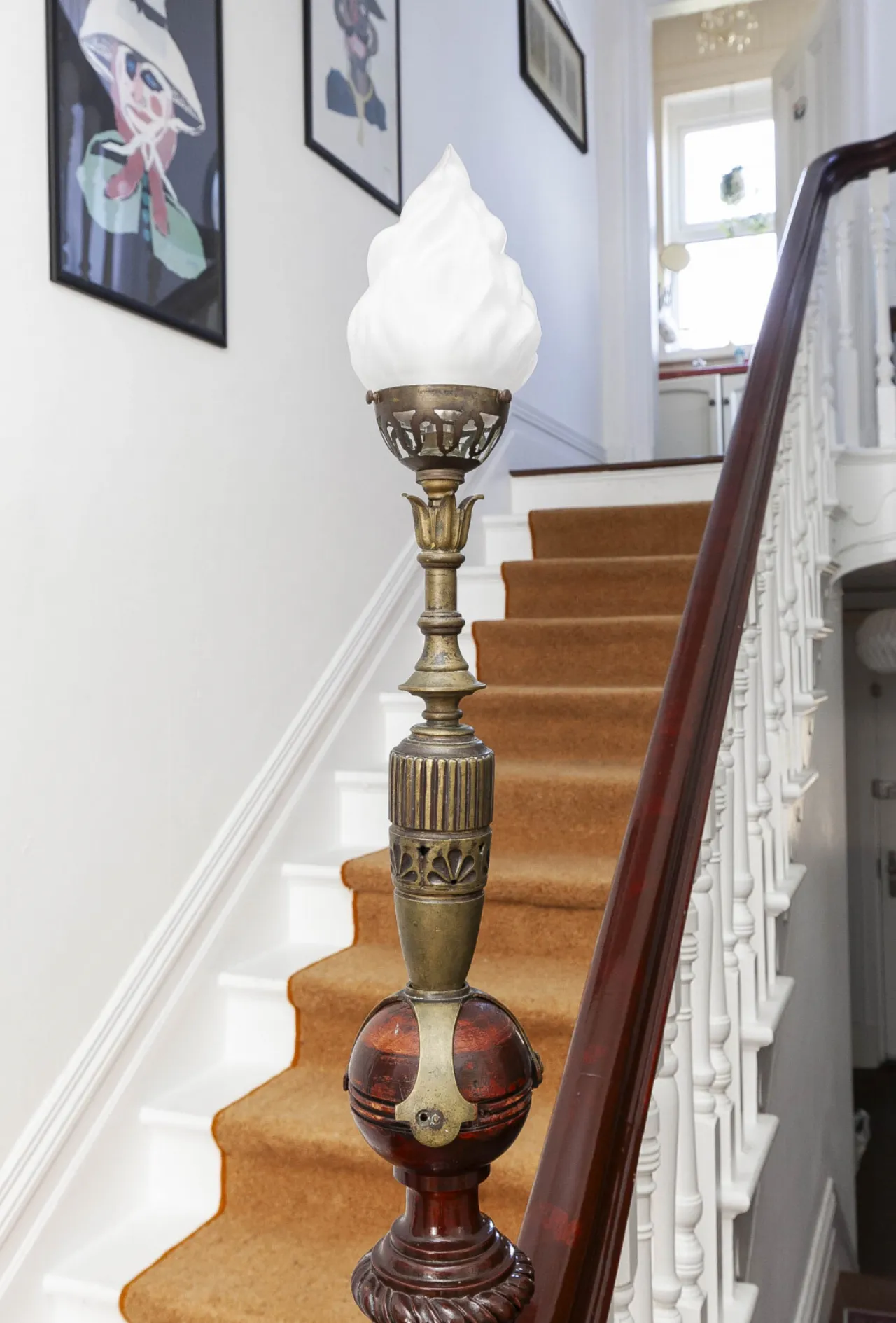 Ceiling corbel, corniced ceiling, wooden floor and access to loft.