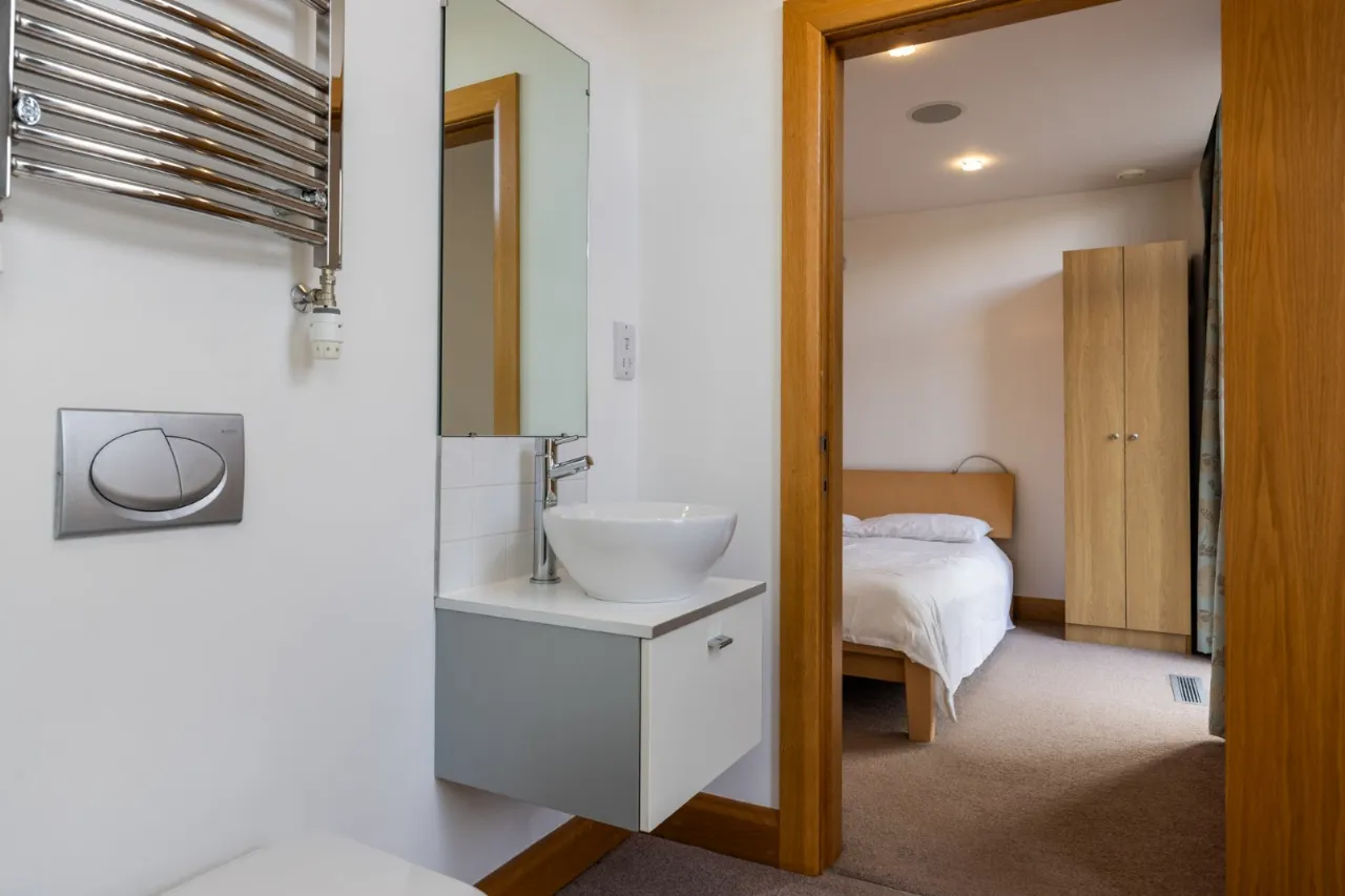 2 sets of modern built in robes, concealed Worcester Bosch gas boiler, recessed spotlightiing, ceiling speaker, full height Westerly facing window.