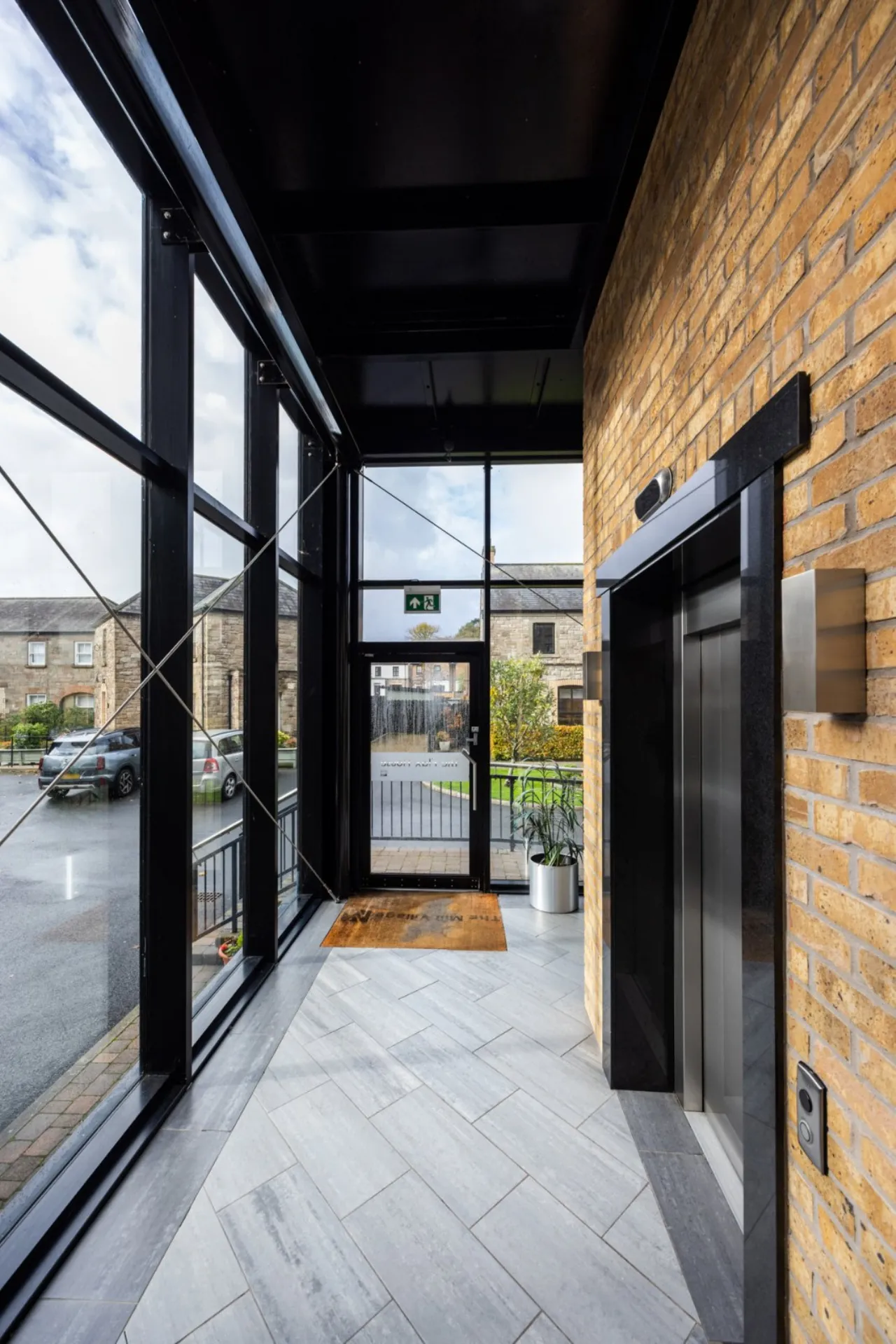 Ceramic tiled floor, lift access and staircase to First Floor.