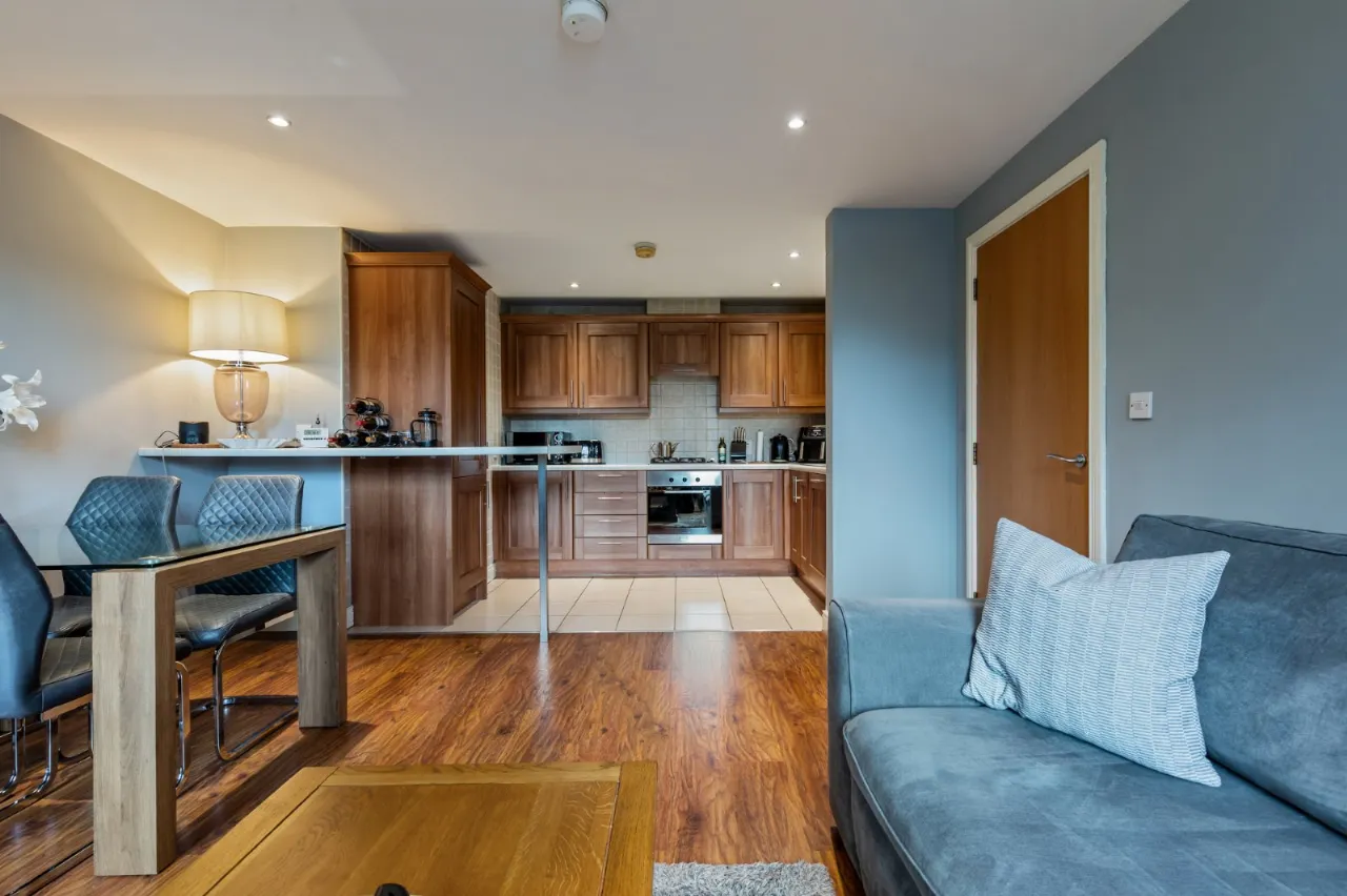 The accommodation comprises a spacious living room with an open aspect to the rear, fitted kitchen with range of integrated appliances and breakfast bar, modern bathroom and two well-proportioned bedrooms – master with an en suite shower room and built-in robe. Externally there is private residents car parking and communal gardens in lawns. The property further benefits from mains gas central heating, uPVC double glazing and a high level of insulation throughout.