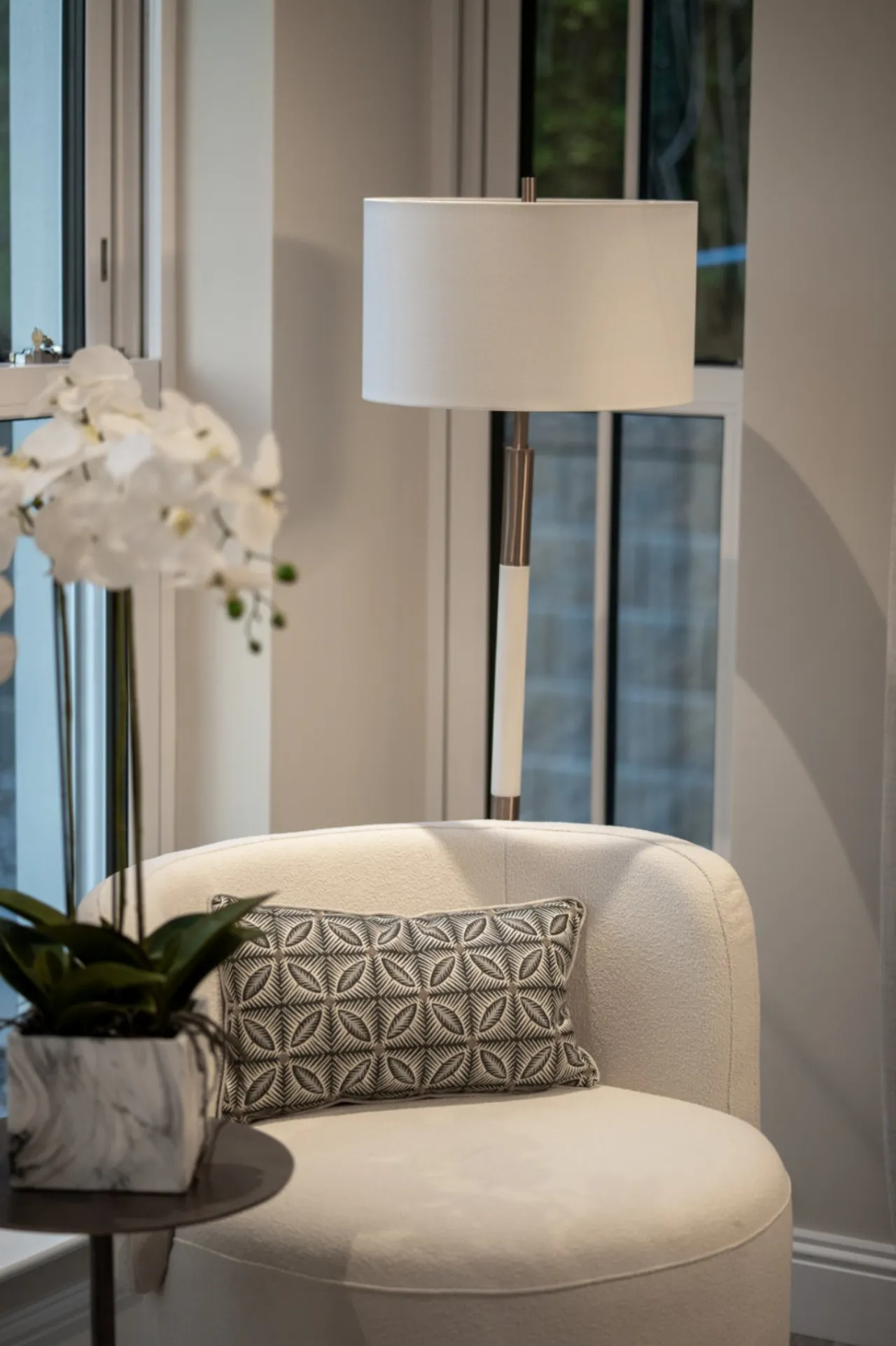 All walls finished in ‘Shaded White’ by Farrow & Ball, with ceilings, skirting and architraves painted white