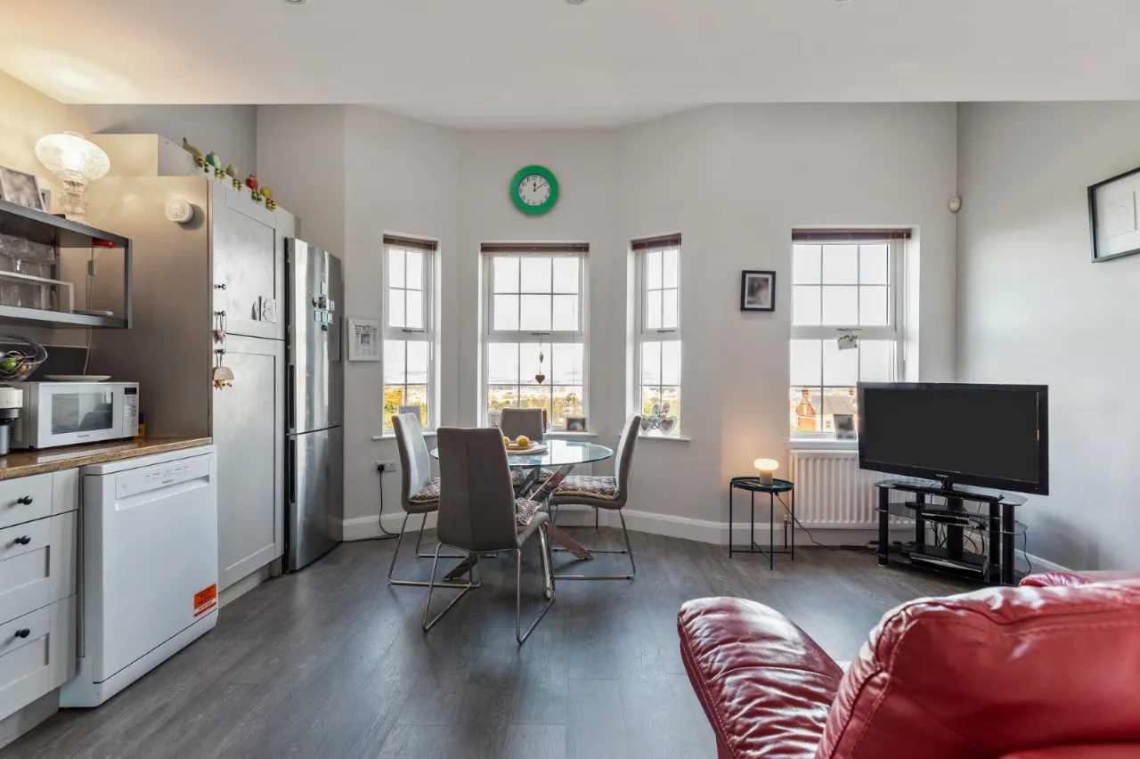 Open plan living/dining room with a delightful bay window bringing in an abundance of natural light