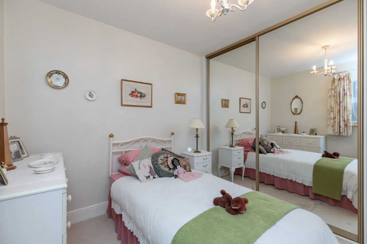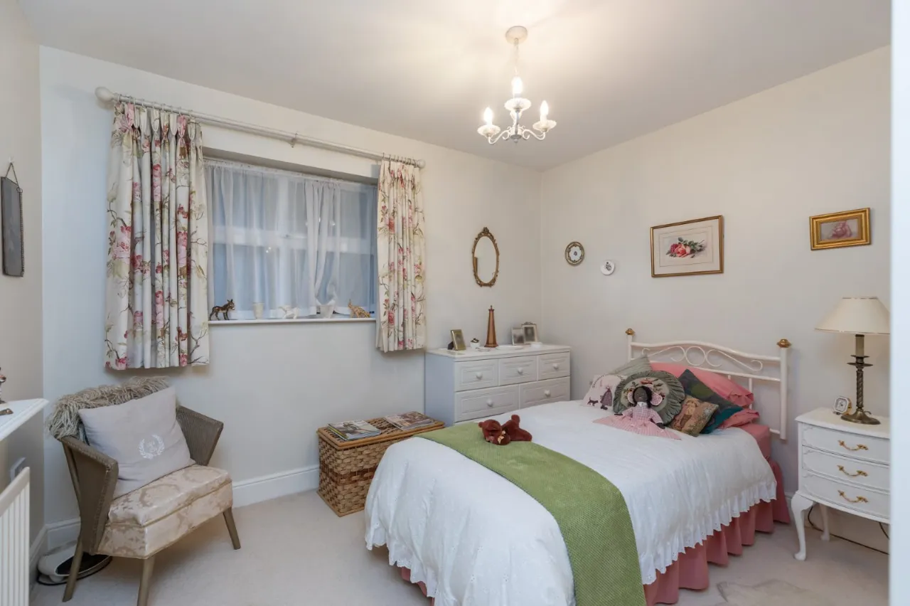 (at widest points to include ensuite). Glazed door to garden, built-in wardrobe.