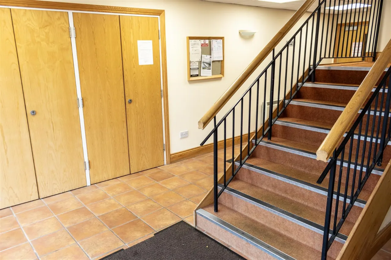 Main door to complex leading to stairs and lift access for apartments. Post boxes.