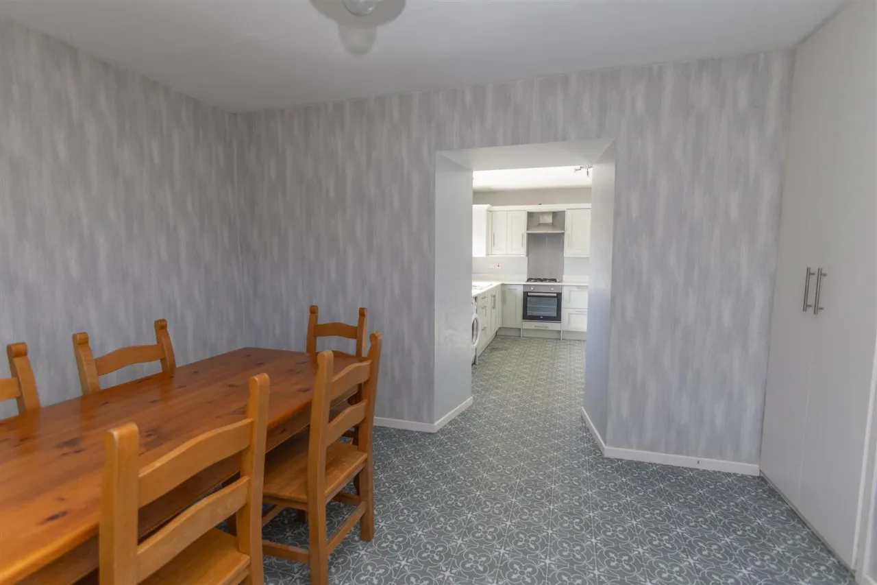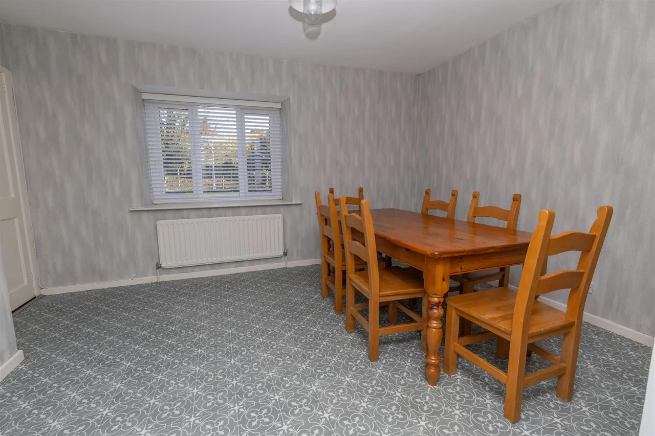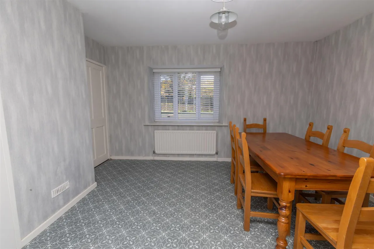 The dining room is fitted with lino flooring and includes a single radiator. There is also a built in shelved cupboard for added storage.