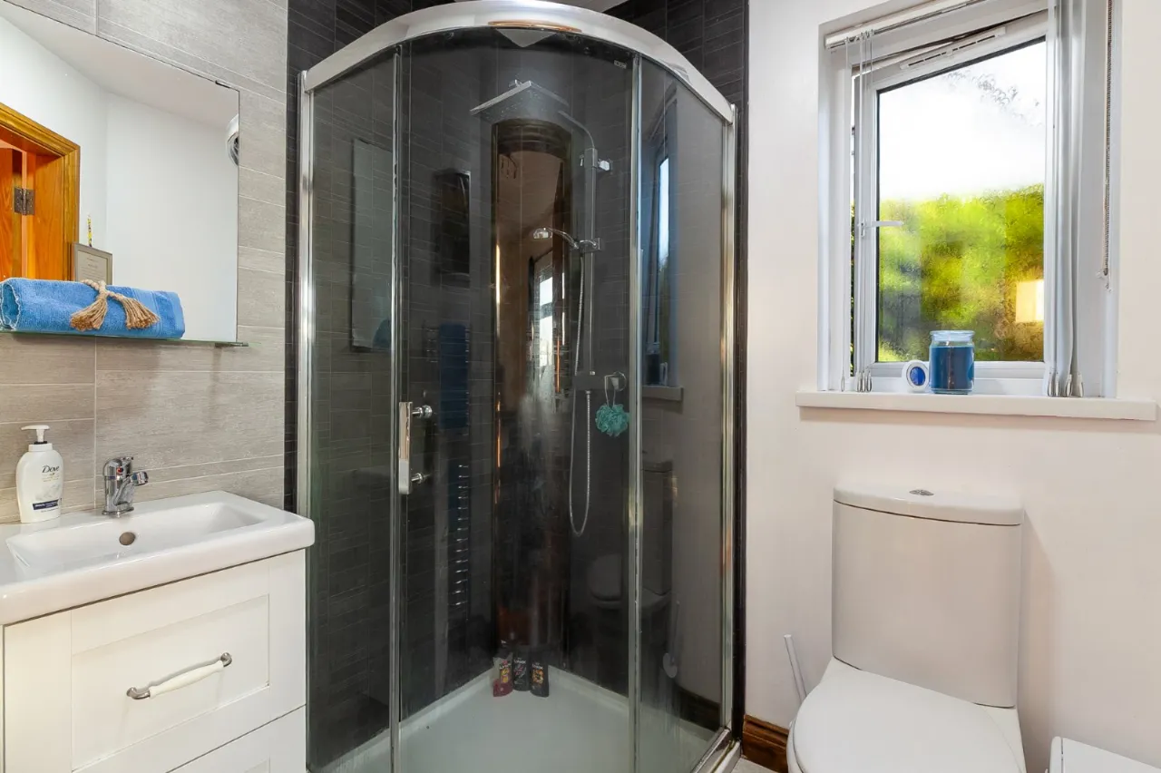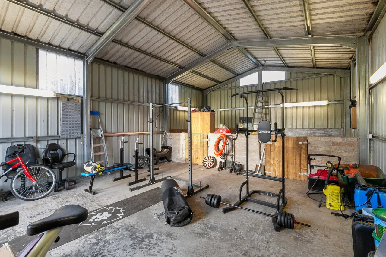 Tarmac driveway leading to excellent parking and turning areas with additional hardstanding to the rear. Generous, level, front, side and rear gardens in lawns. Large agricultural shed ideal for a multitude of uses and adjoining car port.