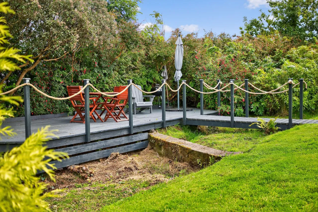 Garden wired and pwoer for hot tub. Tarmac driveway to the front with ample parking. Garden laid in lawn.