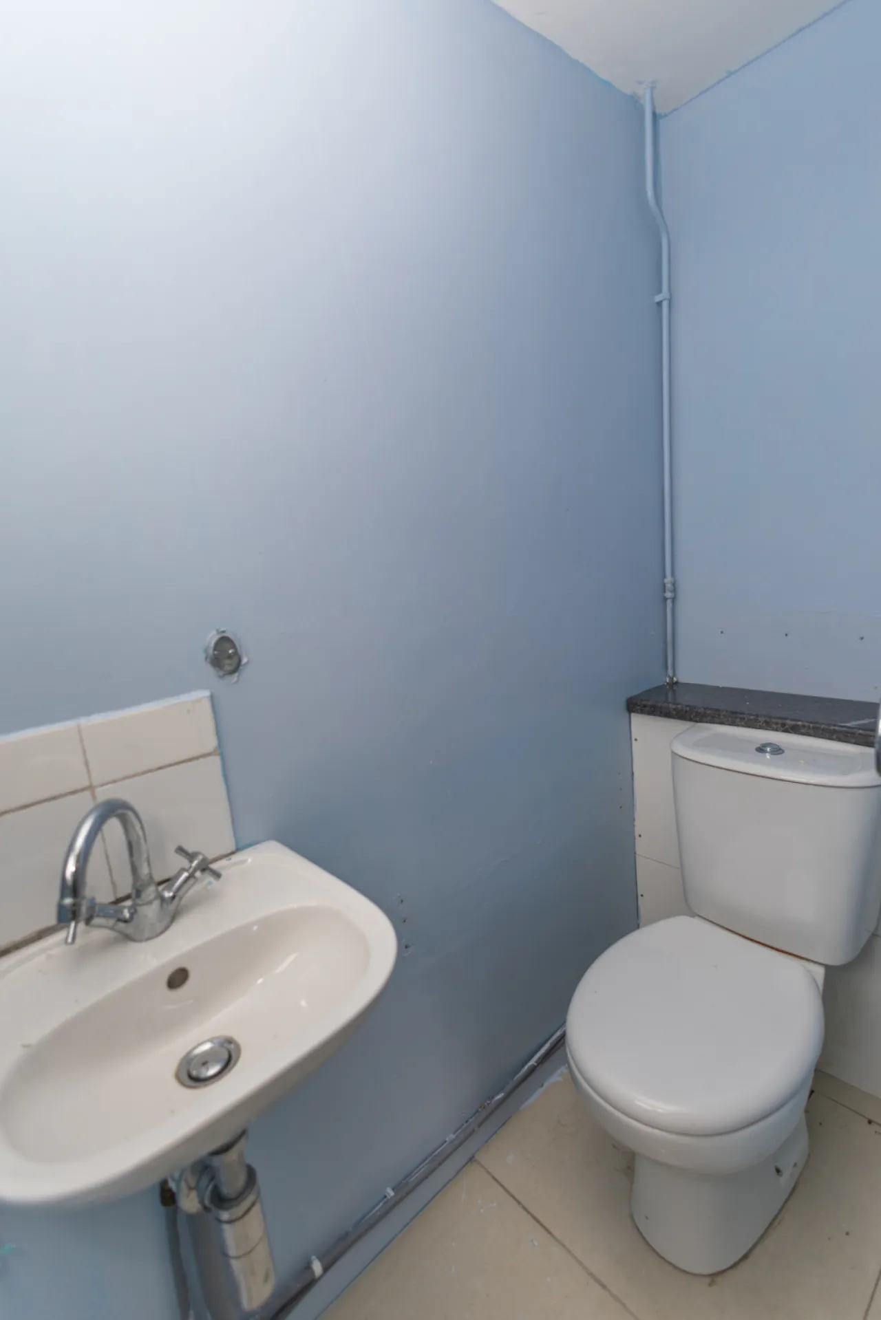 Finished with tiled flooring, comprising a white WC and wash hand basin, providing convenient ground floor facilities.