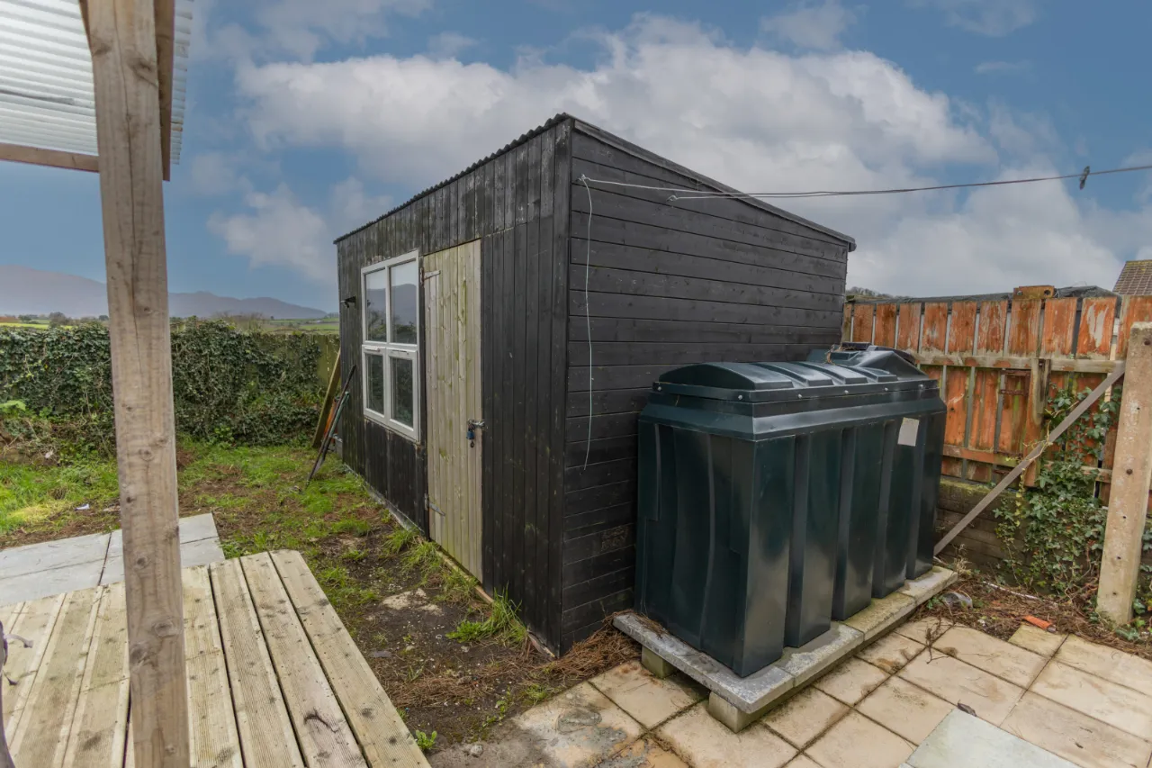 The property benefits from brick-paved off-street parking to the front and a south-west facing rear garden laid in lawn, ideal for enjoying the afternoon sun. A garden shed provides additional storage, completing this practical and low-maintenance outdoor space.