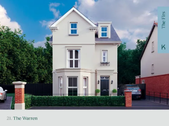 The first of three homes that sit at the top of The Firs plot, The Warren is a stylish family home arranged across three floors. It features a large social kitchen diner, front-facing lounge with three bedrooms on floor one, with two on the upper level complemented by a study with feature window.