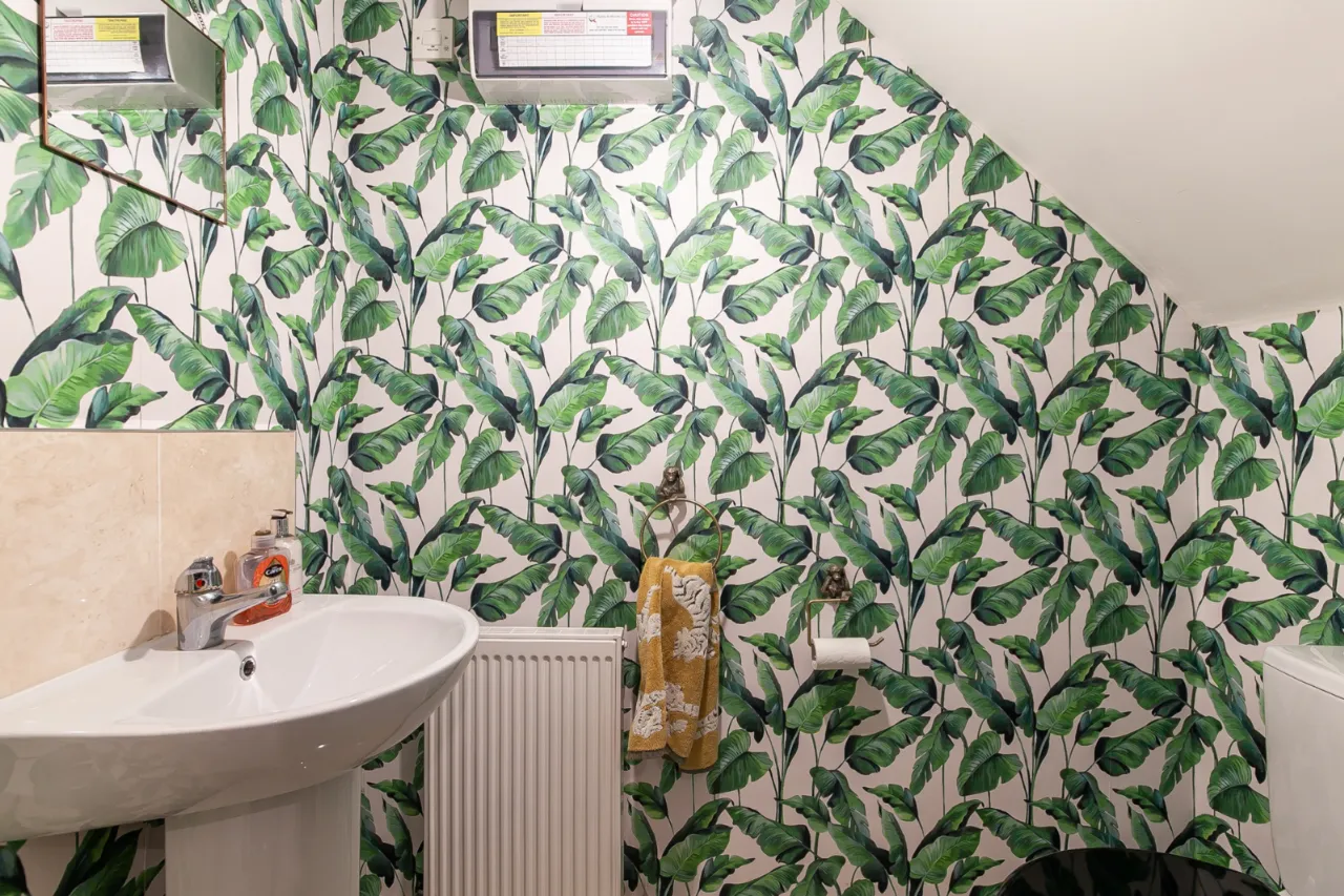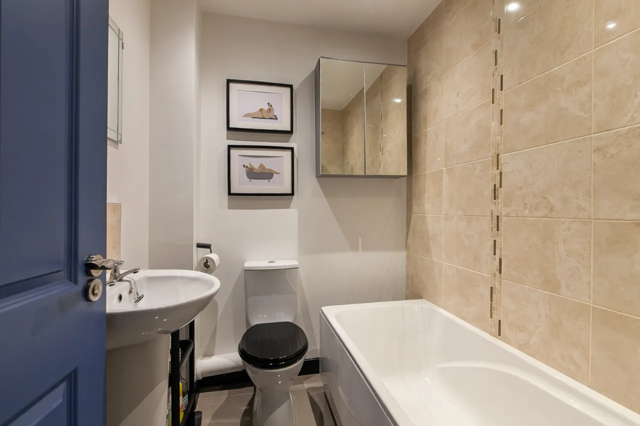Comprises of low flush WC, pedestal wash hand basin with mixer tap and tiled splash back.